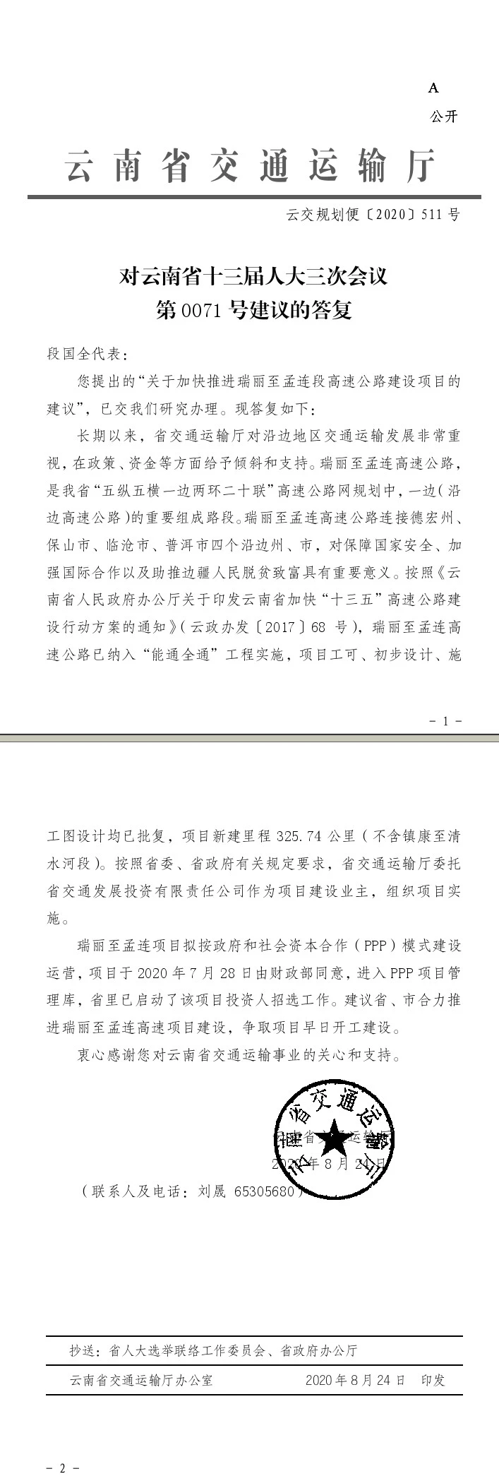 对云南省十三届人大三次会议第0071号建议的答复