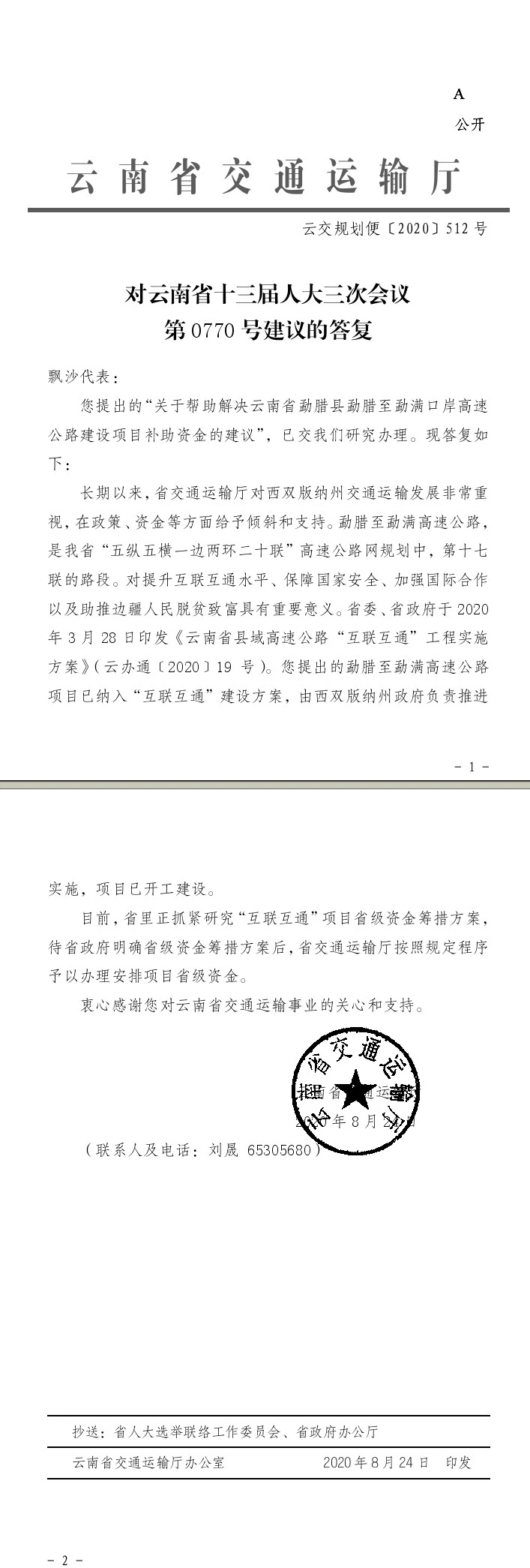 对云南省十三届人大三次会议第0770号建议的答复