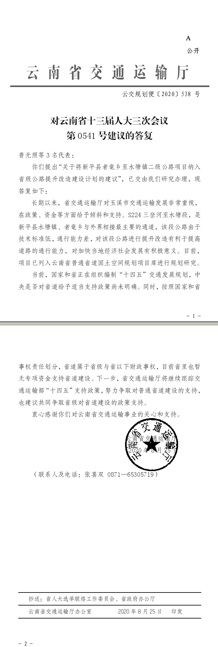 对云南省十三届人大三次会议第0541号建议的答复