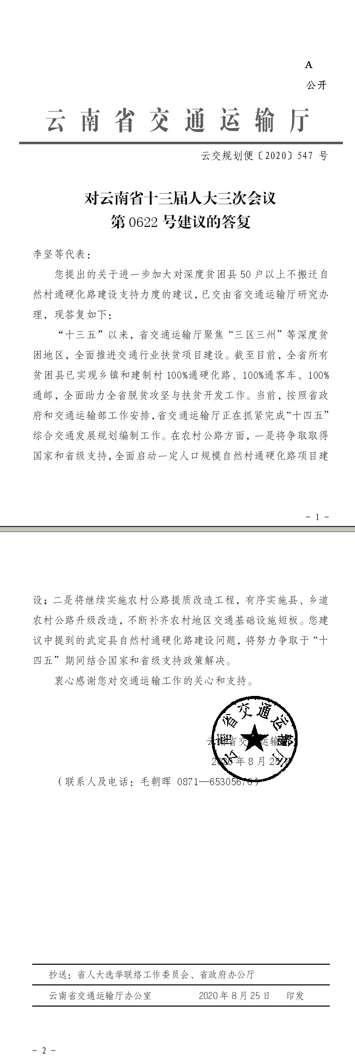 对云南省十三届人大三次会议第0622号建议的答复