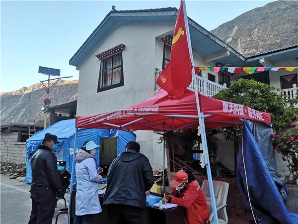 “您好,请靠边停车,配合检查。”在滇藏公路214国道,云南省德钦县与西藏自治区芒康县交界处的一个简易帐篷前,一面鲜红的党旗迎风飘扬。两名橘红色的身影在党旗的映衬下,显得格外耀眼,他们正紧张而有序的忙碌着,对来往的车辆和行人一一进行排查,消毒、体温检测、防疫知识宣传,这是迪庆公路局老党员李华带领德钦分局党员先锋队联合交警、卫健等有关部门工作人员在隔界河省界防控点冒着严寒开展工作的场景。