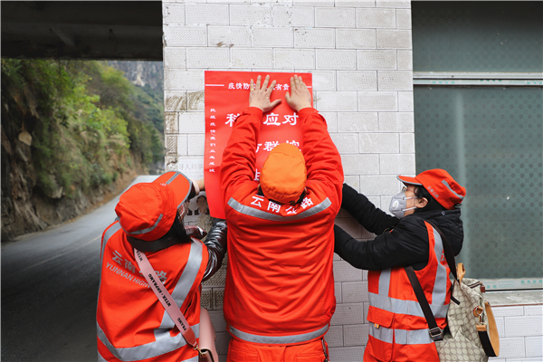 盐津分局罗琼、蒋丽,巧家分局的赵小燕、陈靖梅、陈靖莲、王瑞博,大关分局耿声群、罗太荣、耿声群、余茜、吴希、吴娟,水富分局的陈萍、李吉琴等,她们配合当地的卫健部门、交警部门在疫情管控点设卡,对过往车辆、人员登记,对过往车辆进行消毒,发宣传单,有的每天工作12小时,昼夜值守,在各县的入路口上筑起一道疫情防护墙,守护一方平安。