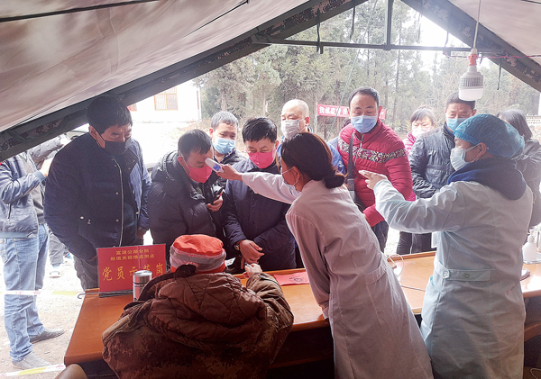 “我是共产党员,在抗击疫情的战役中,我将全力以赴,坚守岗位、认真履职、勇往直前、义无反顾、不惧艰险,疫情不灭,我们不退。”2月4日,在会泽长麦地省界疫情防控监测点,临时党支部交接班的16名共产党员面对党旗庄严宣誓。为守护好滇东北大门,有效开展疫情防控工作,充分发挥党组织战斗堡垒作用和党员的先锋模范作用,局党委配合地方党委政府在会泽长麦地和宣威小牛场设置了两个省界临时党支部,还批复成立了富源黄泥河、胜境关两个省界疫情监测站临时党支部和陆良召夸、板桥两个省内疫情检测站临时党支部,为打赢这场战役提供坚强的组织保障,共同筑牢“红色防线”。