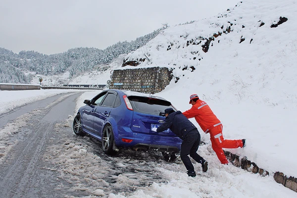 1月25日,抗风雪保畅通,雪中施救。