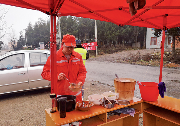晏和忠是会泽分局机化站的一名机驾人员,也是一名党员,曾参加过汶川抗震救灾,他驾驶的铲雪车是分局抗击冰雪最有力的武器,在除雪作业中,他熟练操作机械,经过几个小时的作业,反倒不觉得冷。12名应急队员一直忙到晚上8点多才匆匆吃上饭。吃饭时,待补所所长保德稳是回族,实在找不到回族饭店,又没有其他吃的,他就只能简单吃了一碗腐乳下白饭。