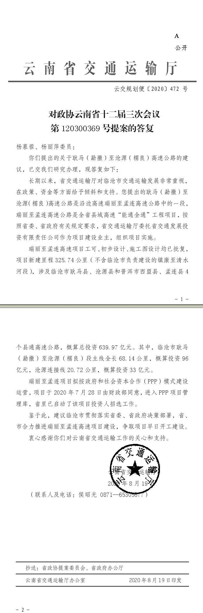 对政协云南省十二届三次会议第120300369号提案的答复