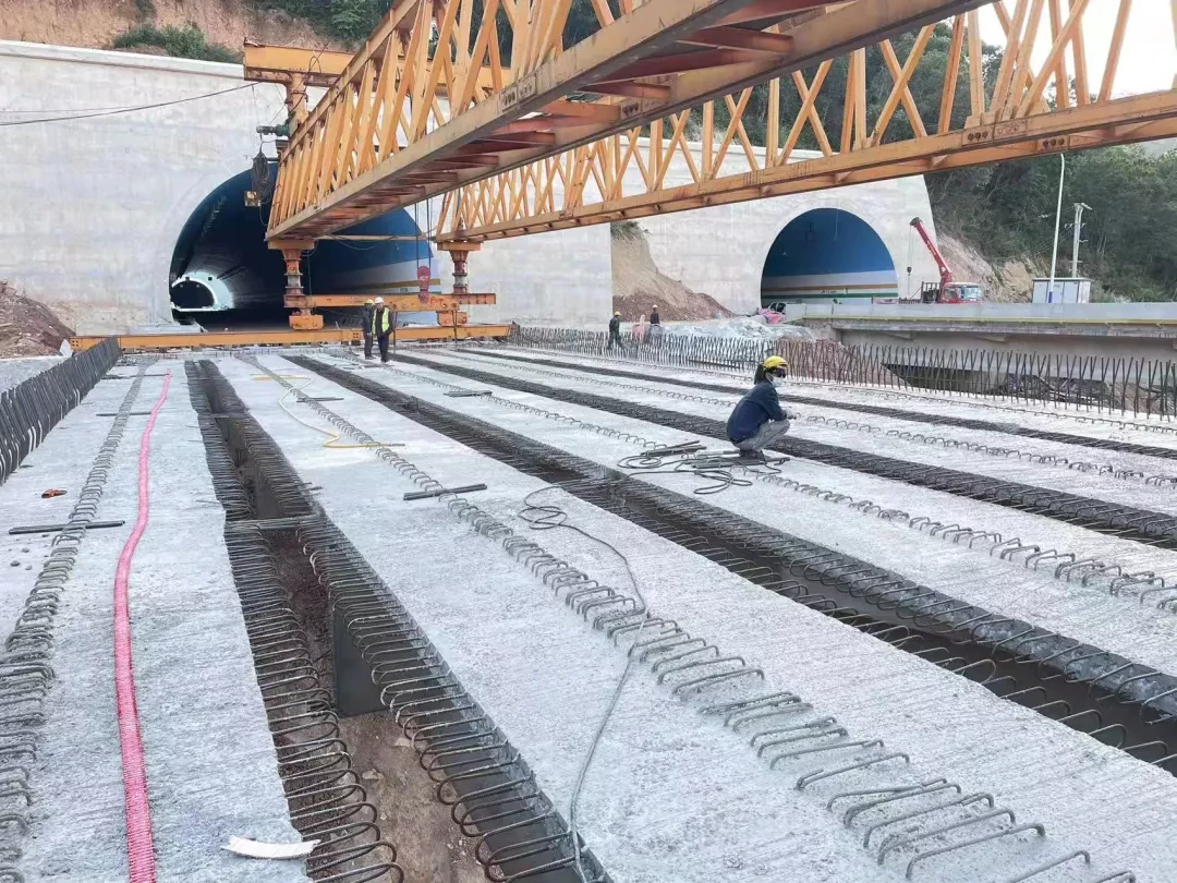 12月21日,随着根很中寨隧道左幅桥最后一片T梁顺利吊装到位,临双高速公路第三合同段实现全线双幅贯通。
