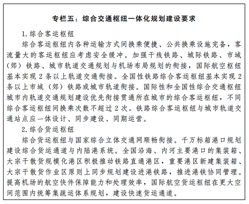 (三)建设多层级一体化国家综合交通枢纽系统