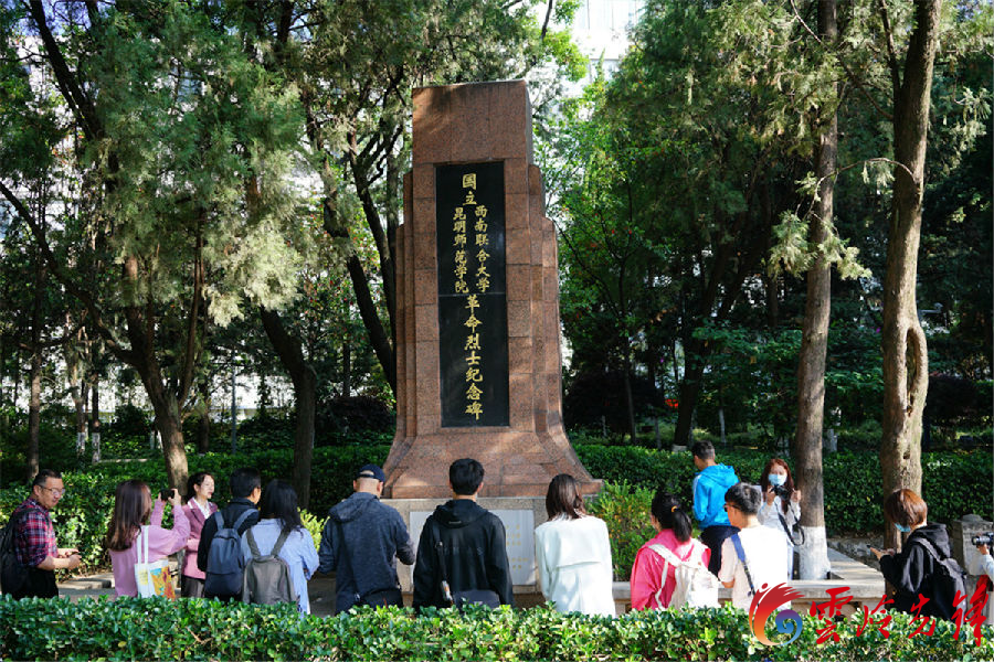 主题采访团先后来到了国立西南联合大学旧址,瞻仰国立西南联大纪念碑,向一二·一运动四烈士墓和闻一多衣冠冢默哀,并走进云南师范大学西南联大博物馆感受那段波澜壮阔的历史。在那段特殊的岁月,联大师生为挽救民族危亡的坚定担当至今依然让人动容。在新的历史时期,西南联大旧址因西南联大独特的历史地位和特殊的价值意义,成为经典的历史文化遗产而不断地得到传承和弘扬。据了解,西南联大旧址及其博物馆先后被国家和省市部门列为全国首批百个爱国主义教育示范基地、全国红色旅游经典景区、全国红色旅游精品线路、全国重点文物保护单位等。