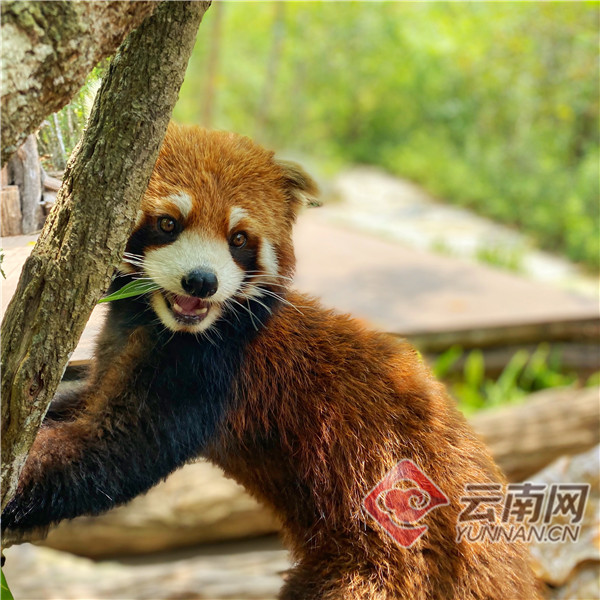 普洱国家公园中可爱的小熊猫,喜爱与人亲近。记者 张玛睿 摄