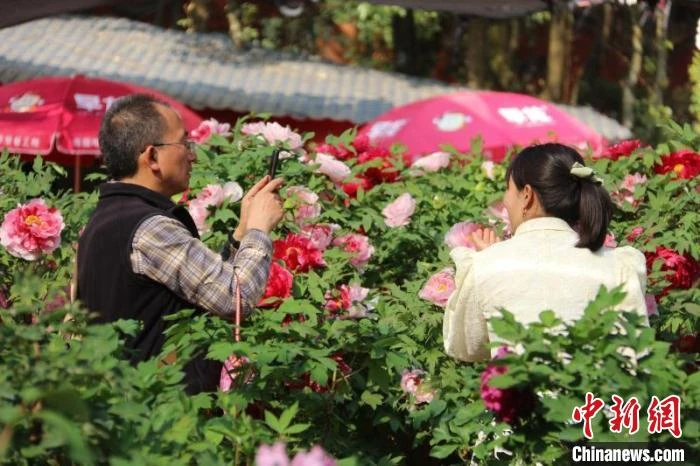 图为狮子山牡丹园游客在拍照。 武学成 摄