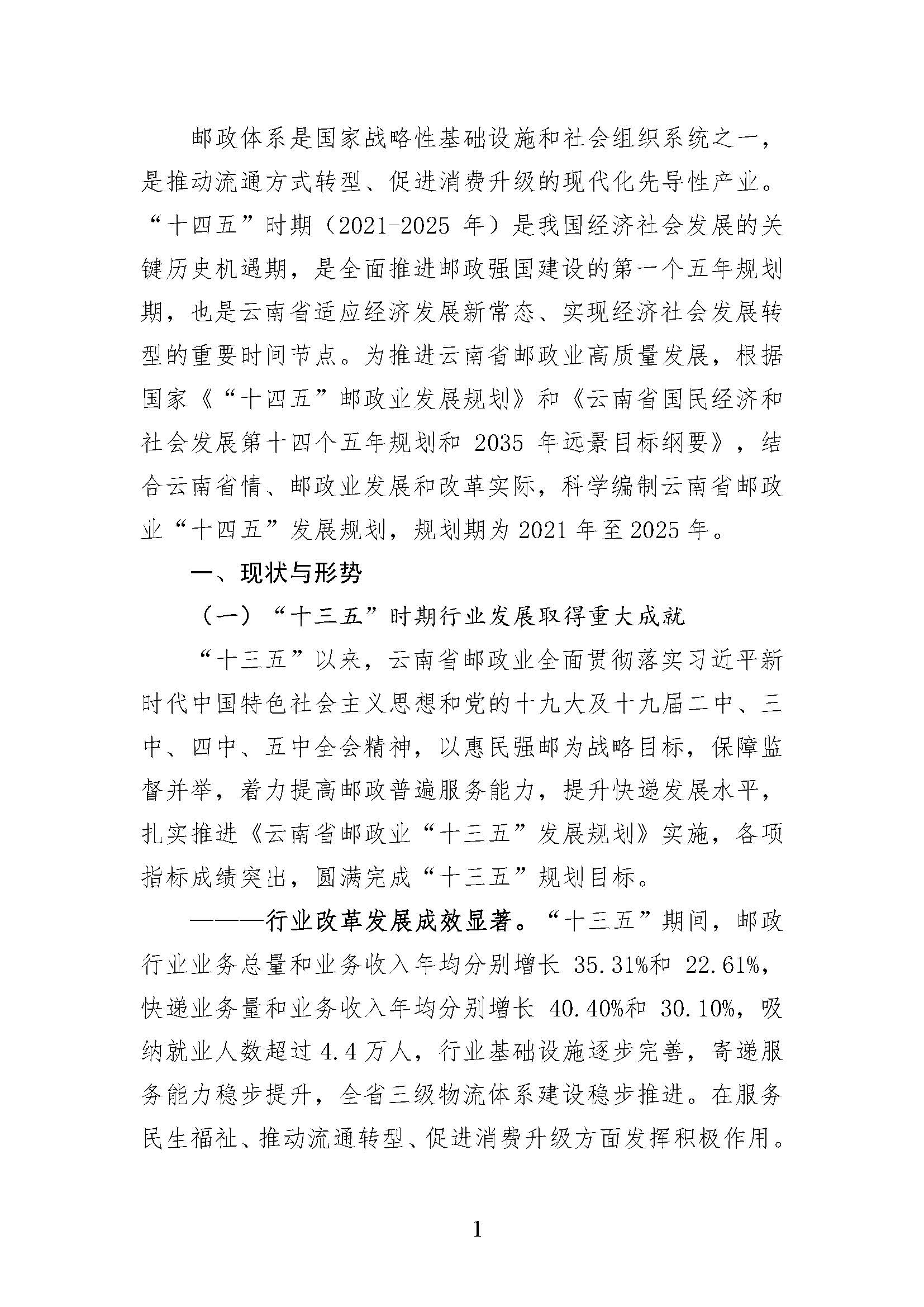 云南省邮政业“十四五”发展规划