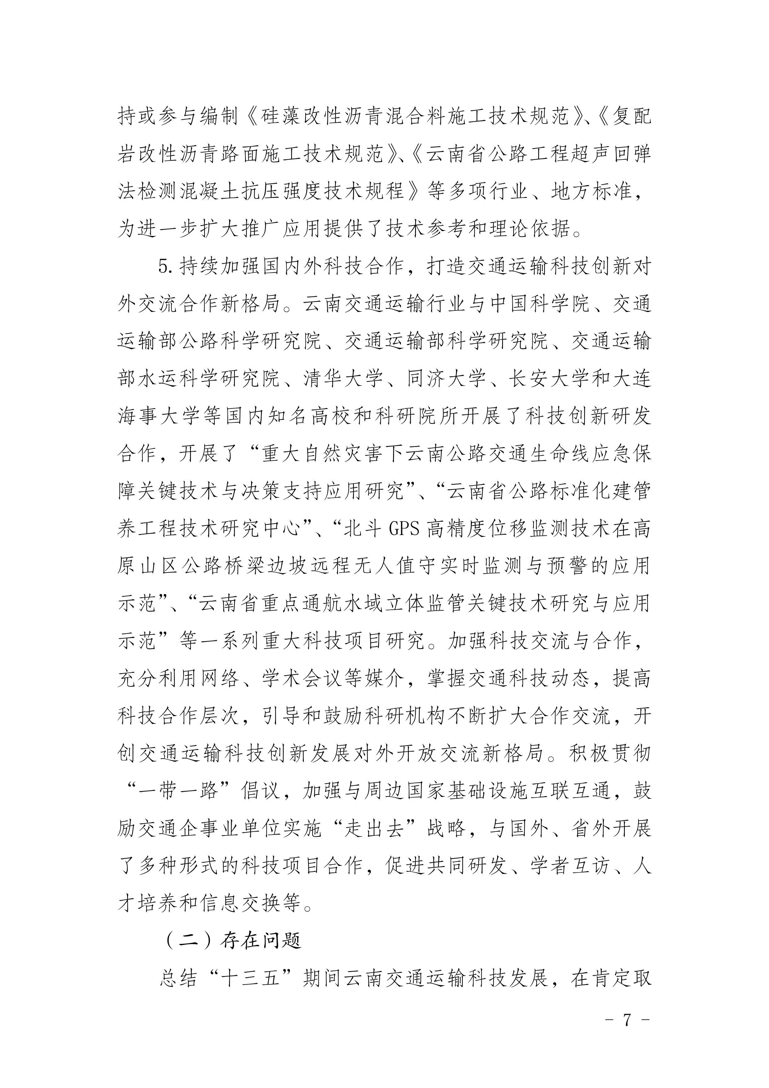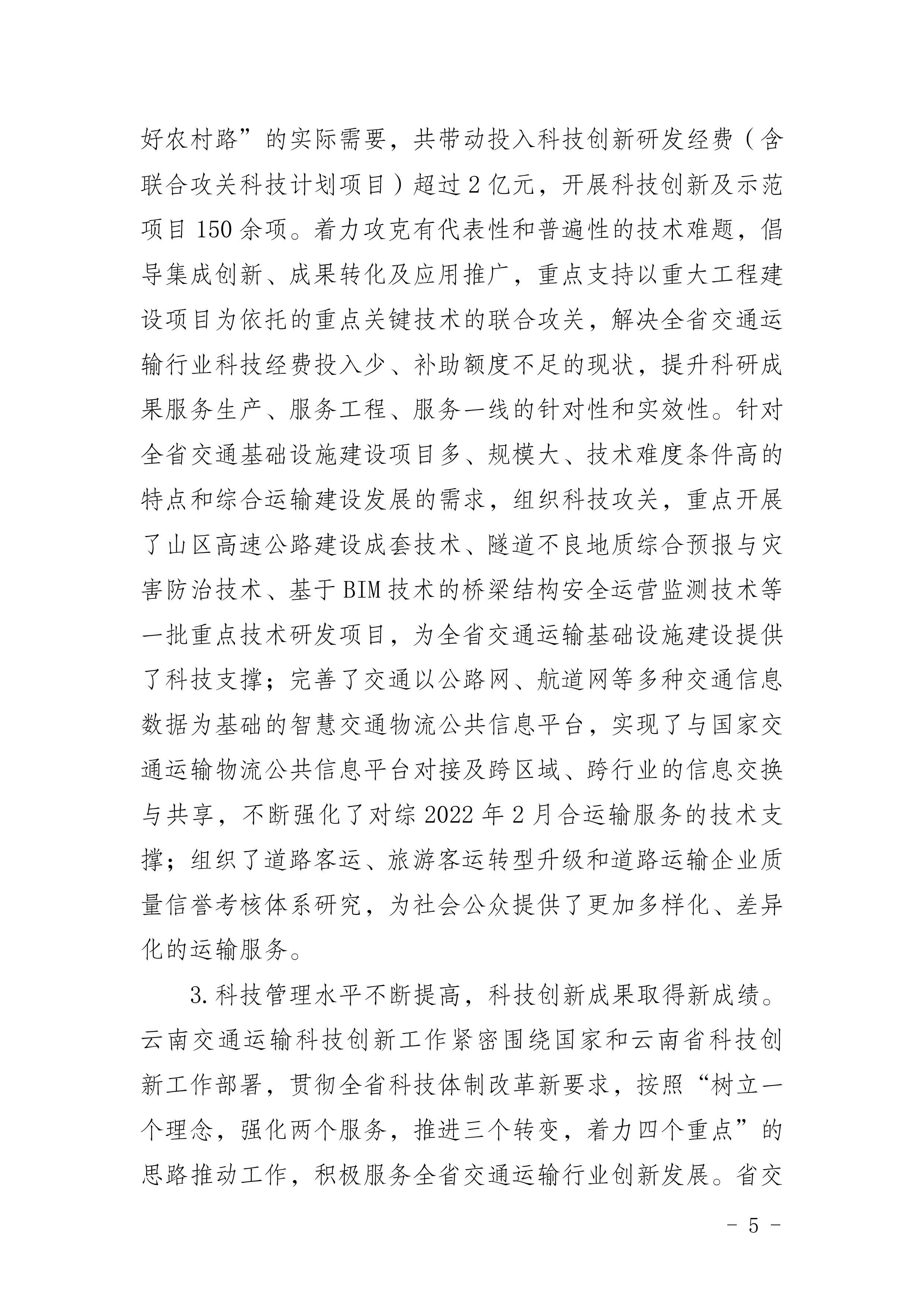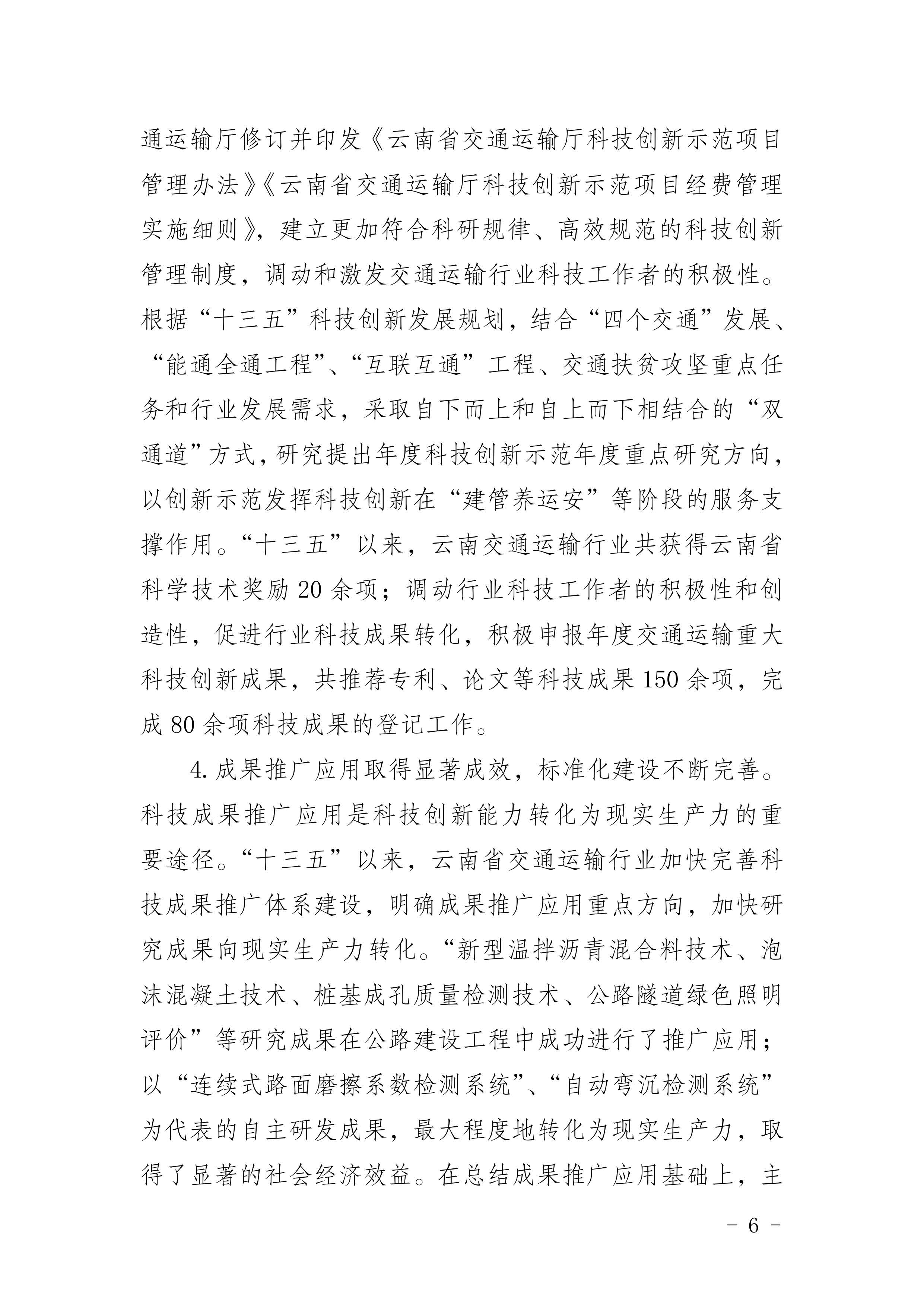 现将《云南省交通运输科技创新“十四五”发展规划》印发给你们,请认真贯彻执行。