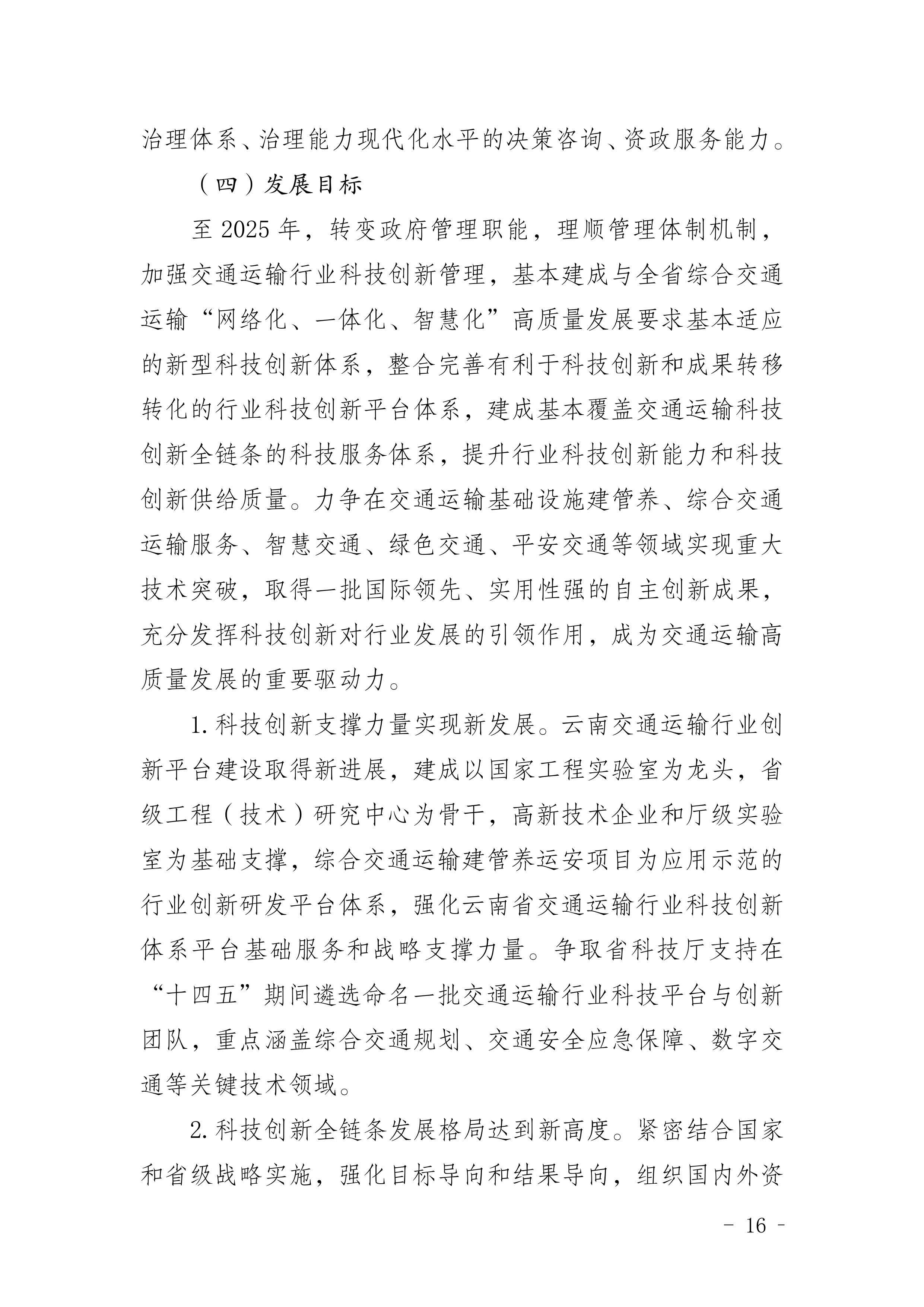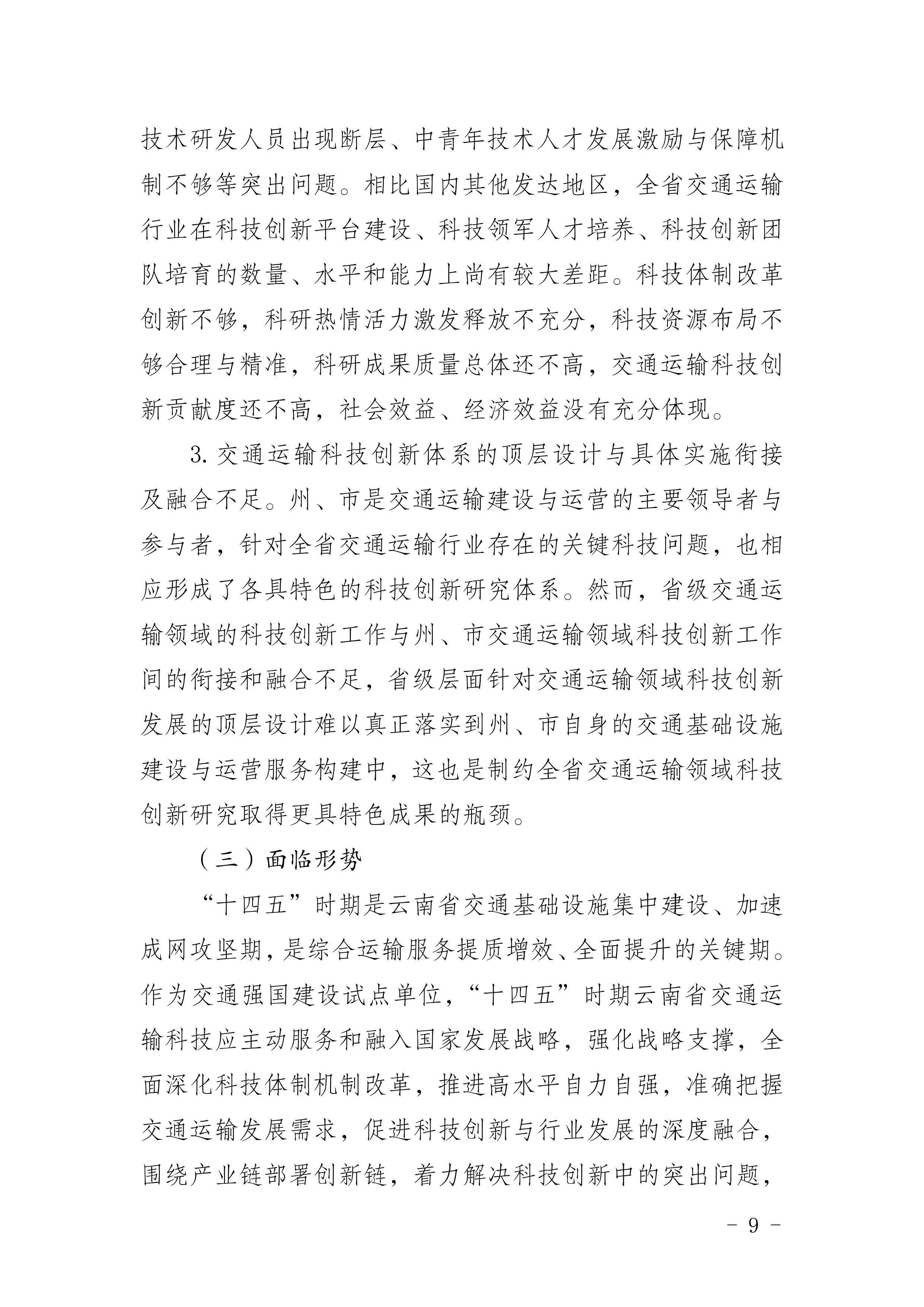 《云南省交通运输科技创新“十四五”发展规划》政策解读