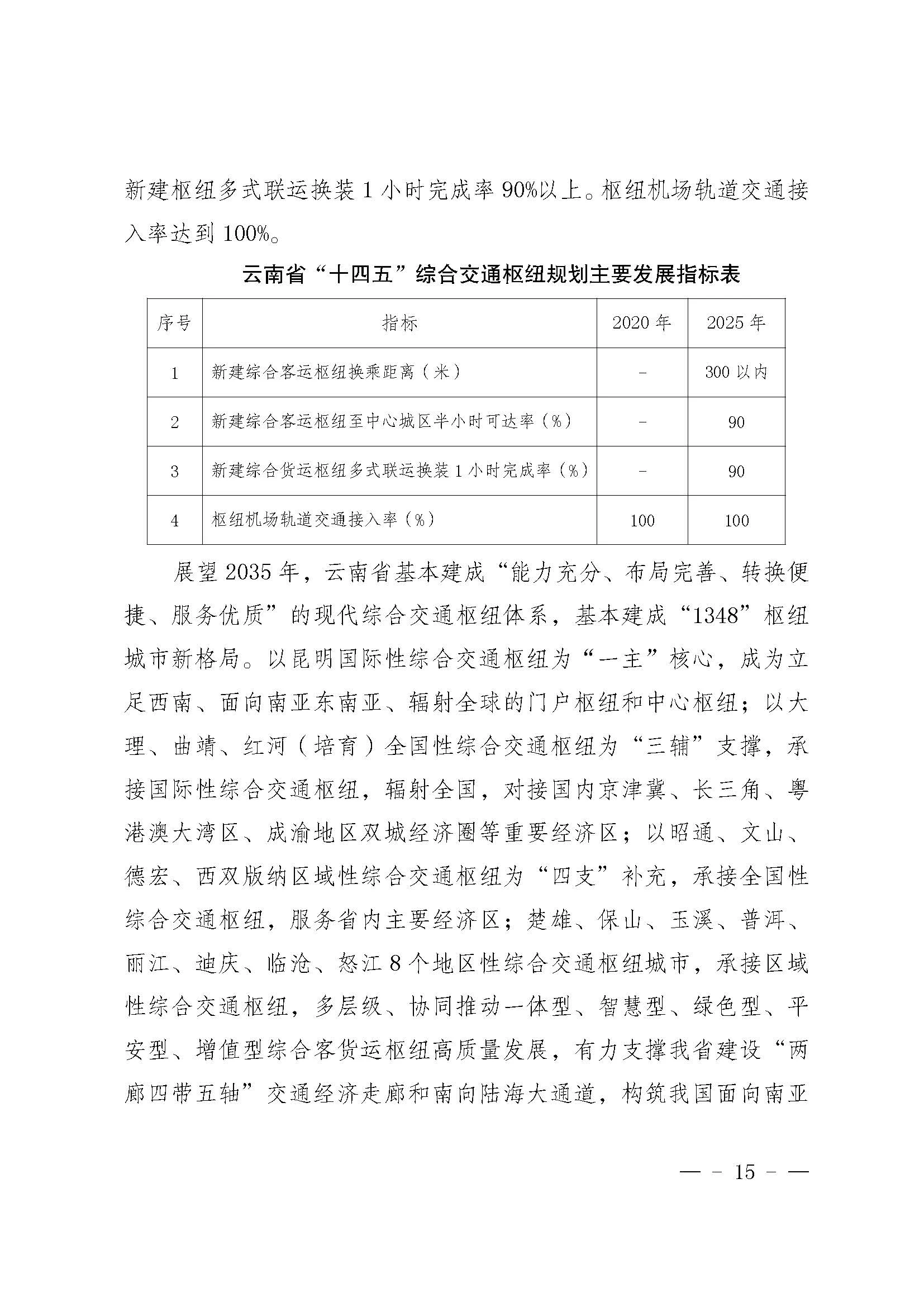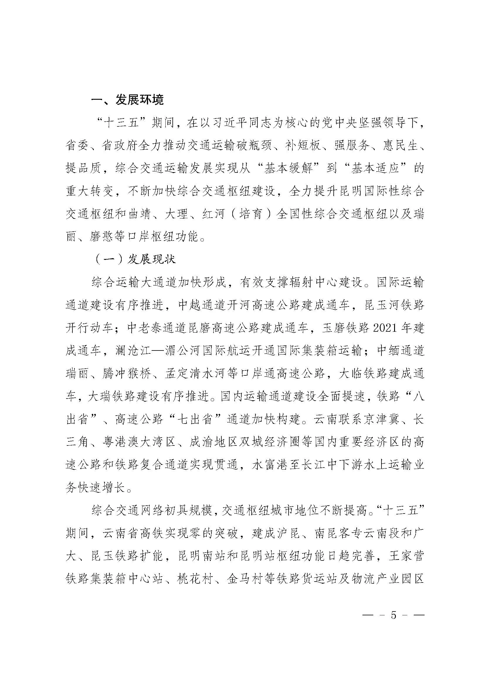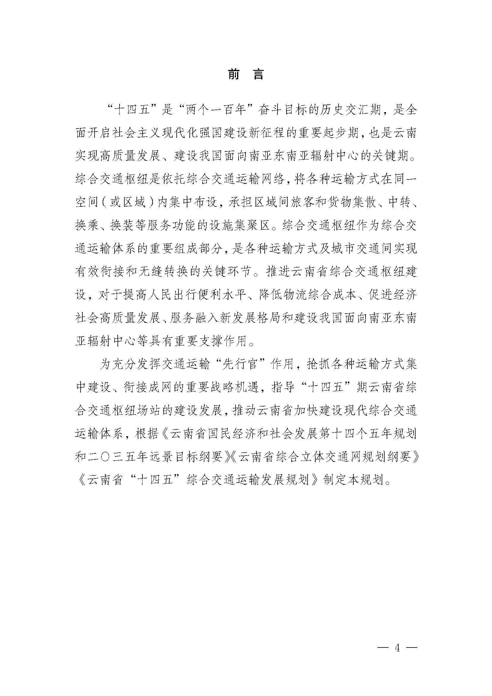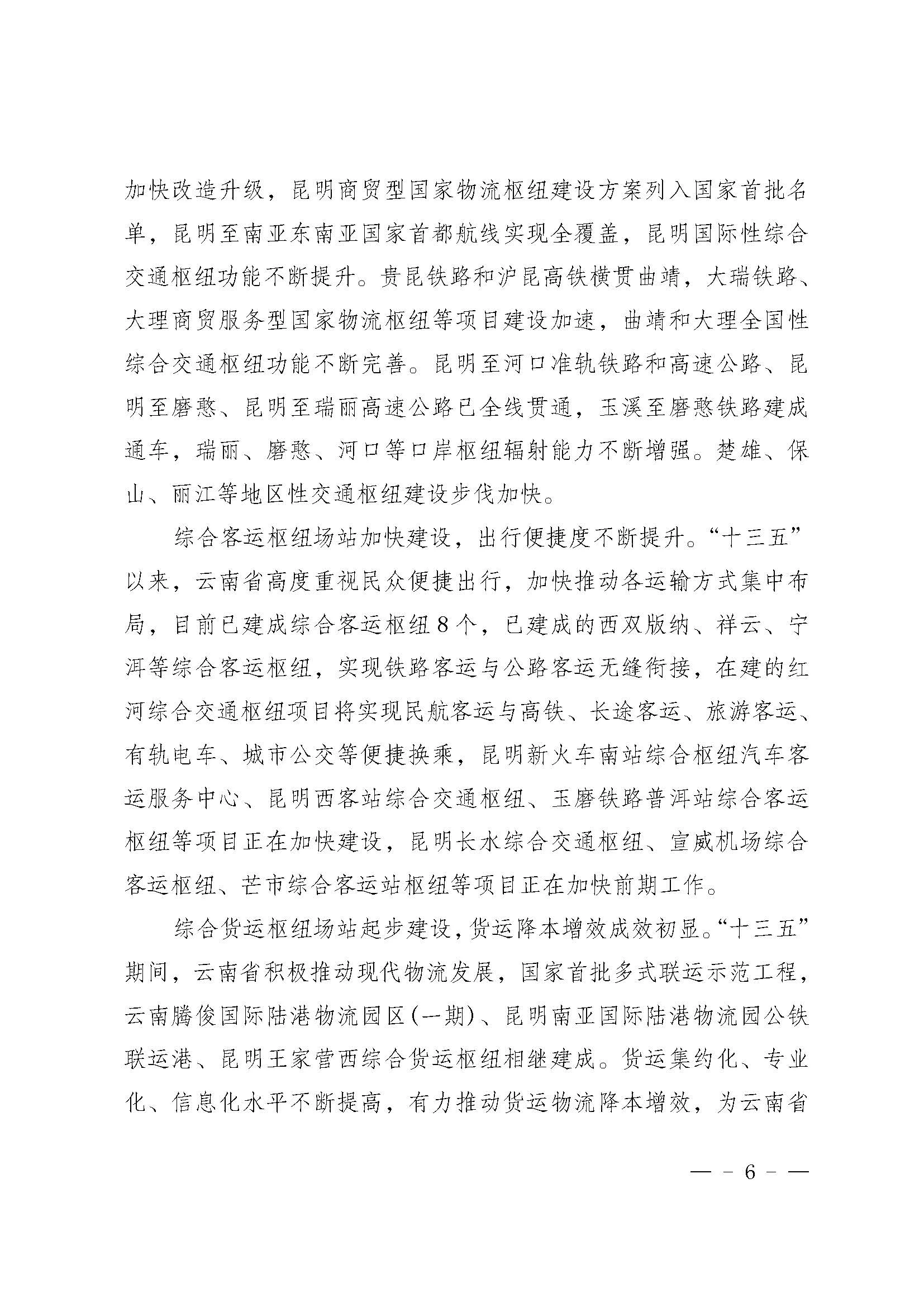 现将《云南省综合交通枢纽“十四五”发展规划》印发给你们,请认真贯彻执行。