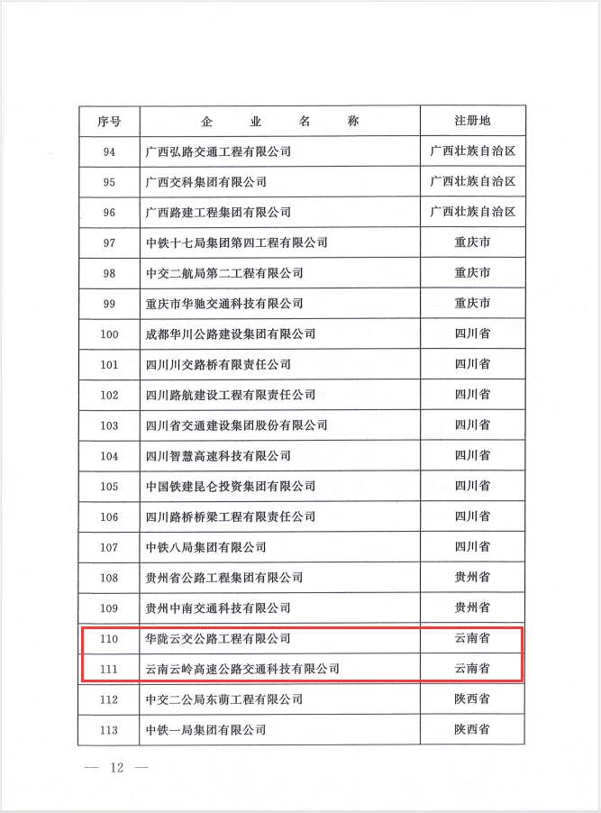 云南省内7家企业入选2022年全国公路建设领域“红名单”