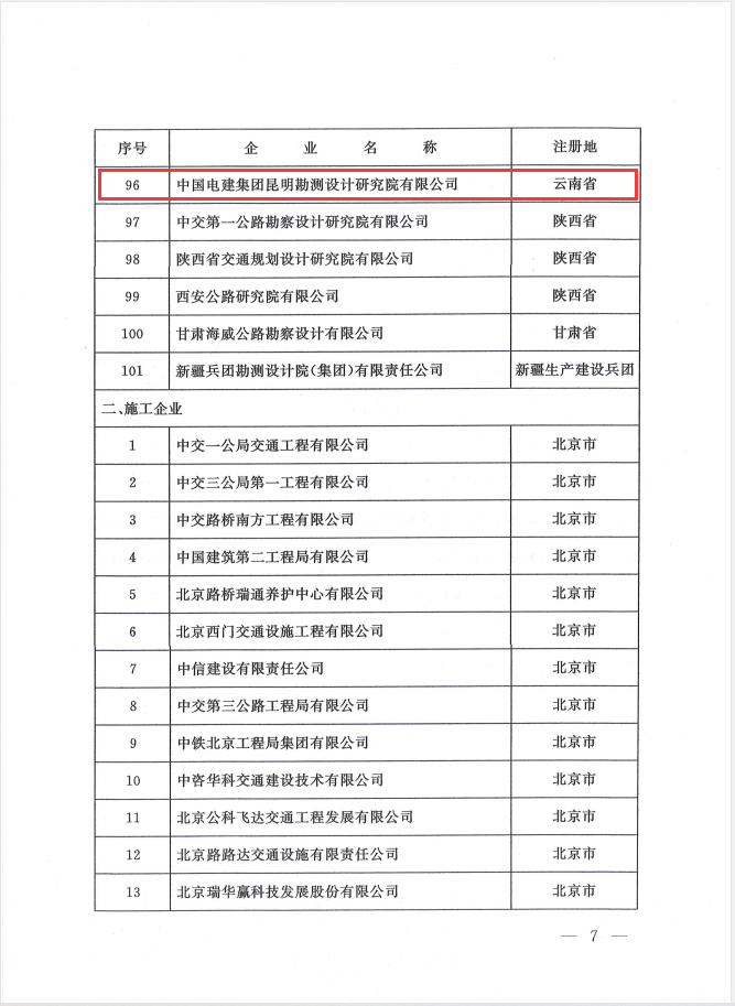 近日,交通运输部公布了2022年全国公路水运工程建设领域守信典型企业目录(以下简称信用“红名单”企业),云南省内共7家企业(含公路工程设计企业5家、 公路工程施工企业2家)“红榜有名”。