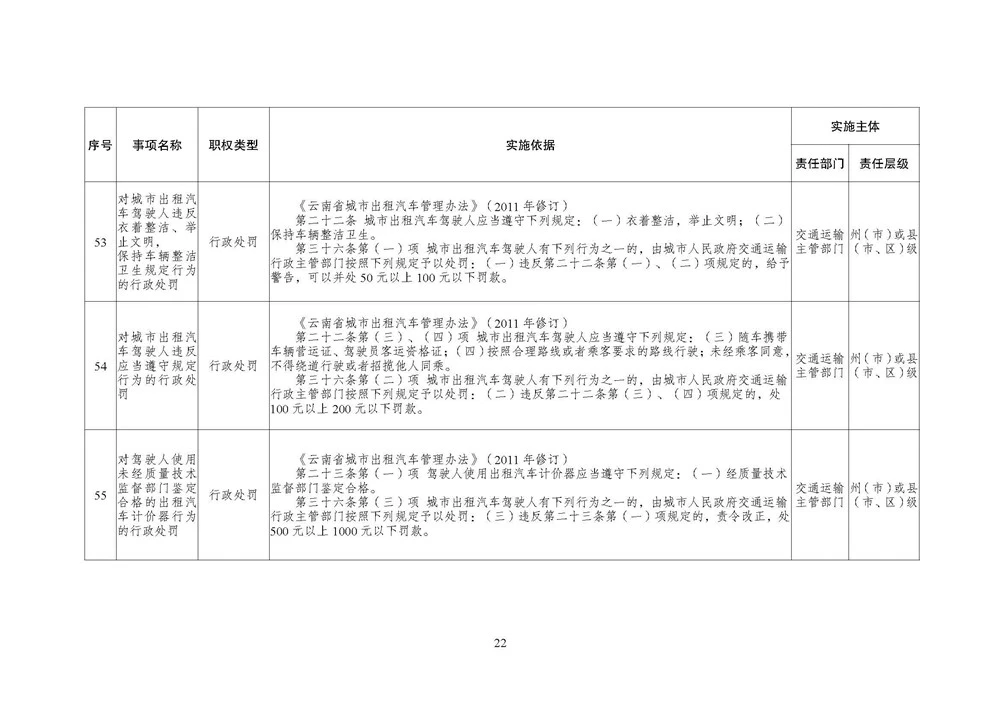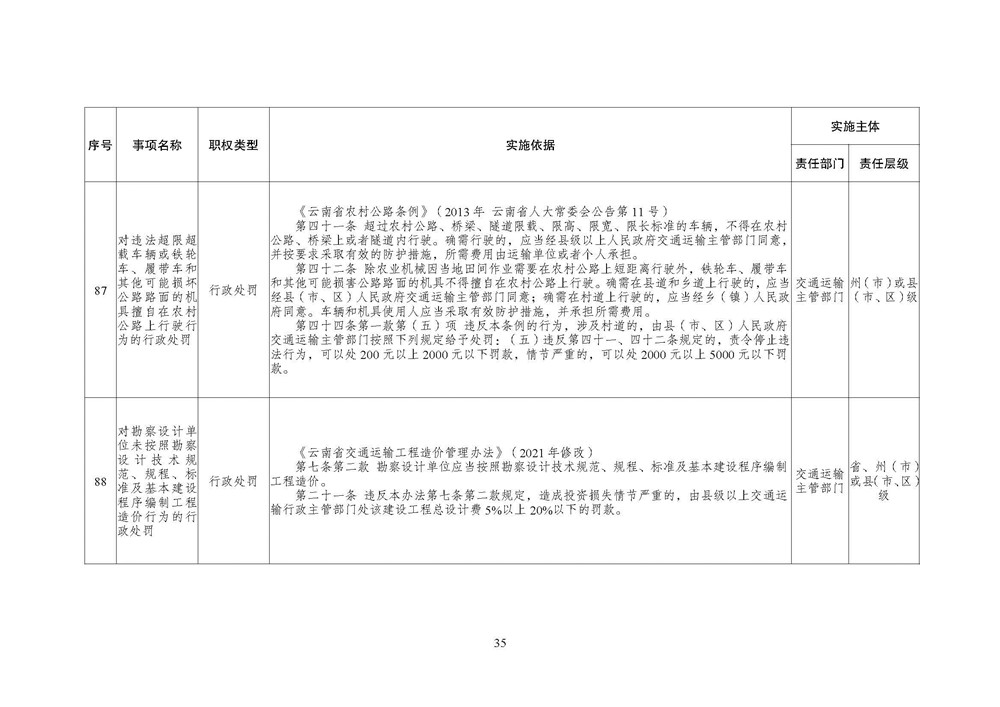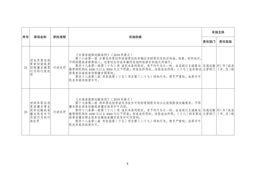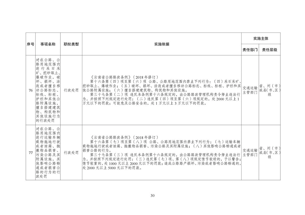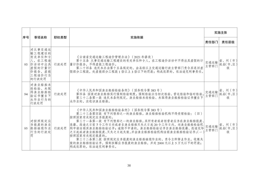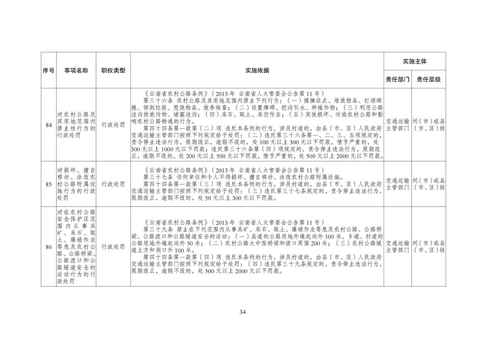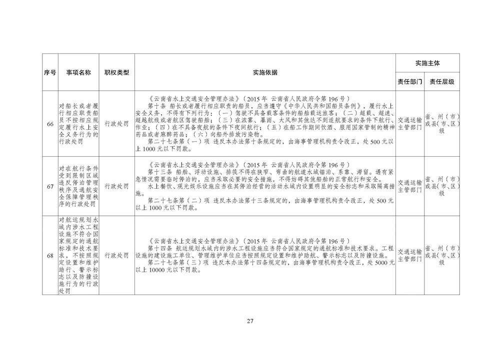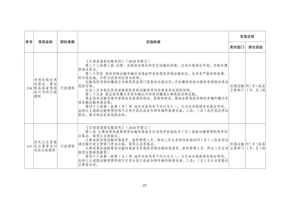 云南省交通运输综合行政执法事项指导目录(2021年版)