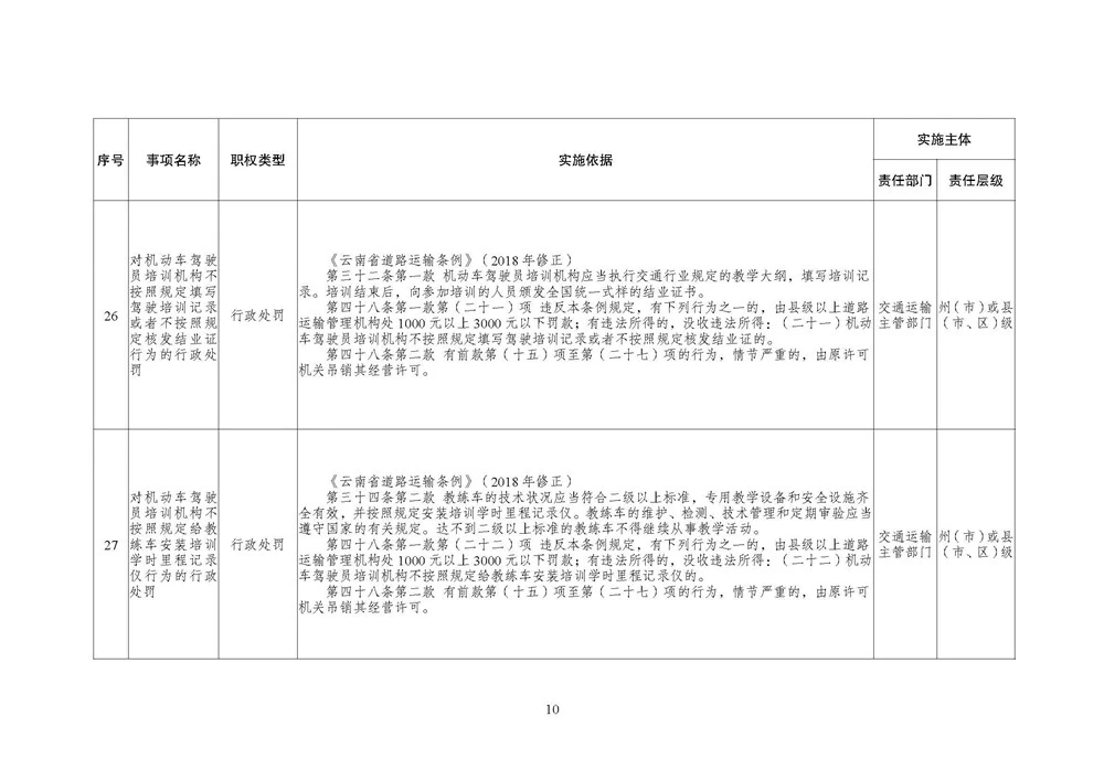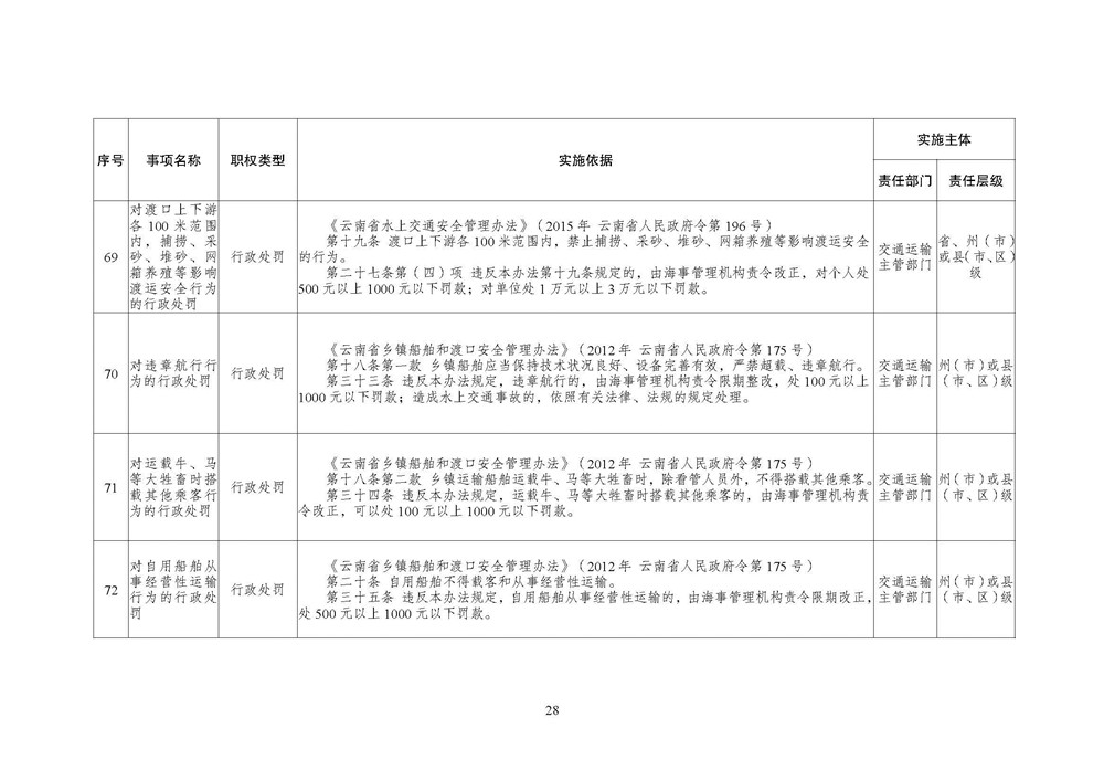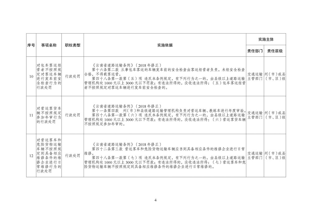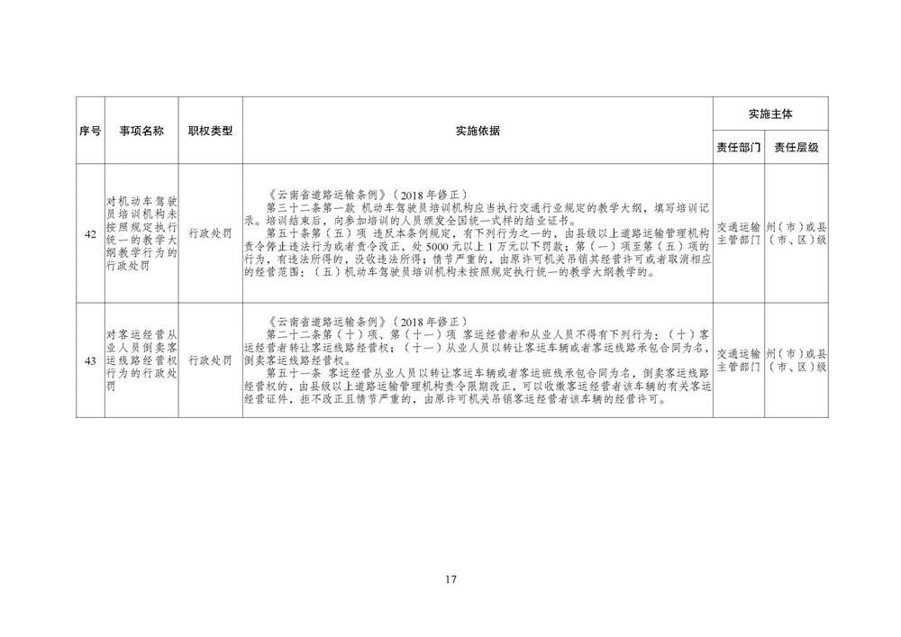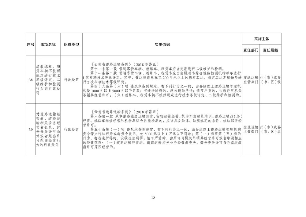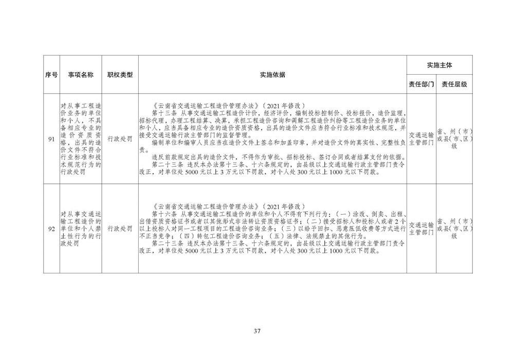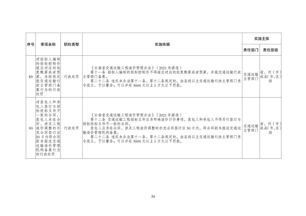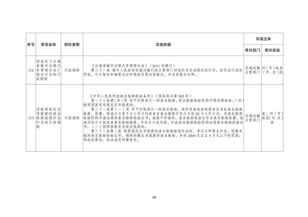 云南省交通运输综合行政执法事项指导目录(2021年版)