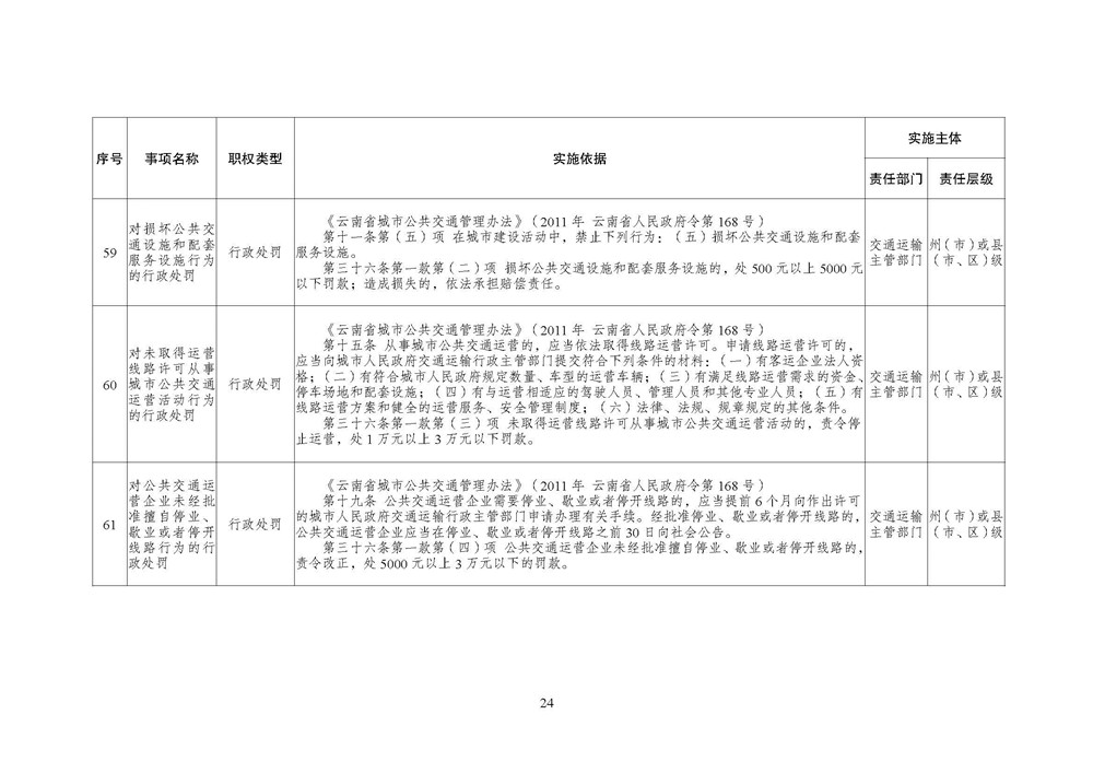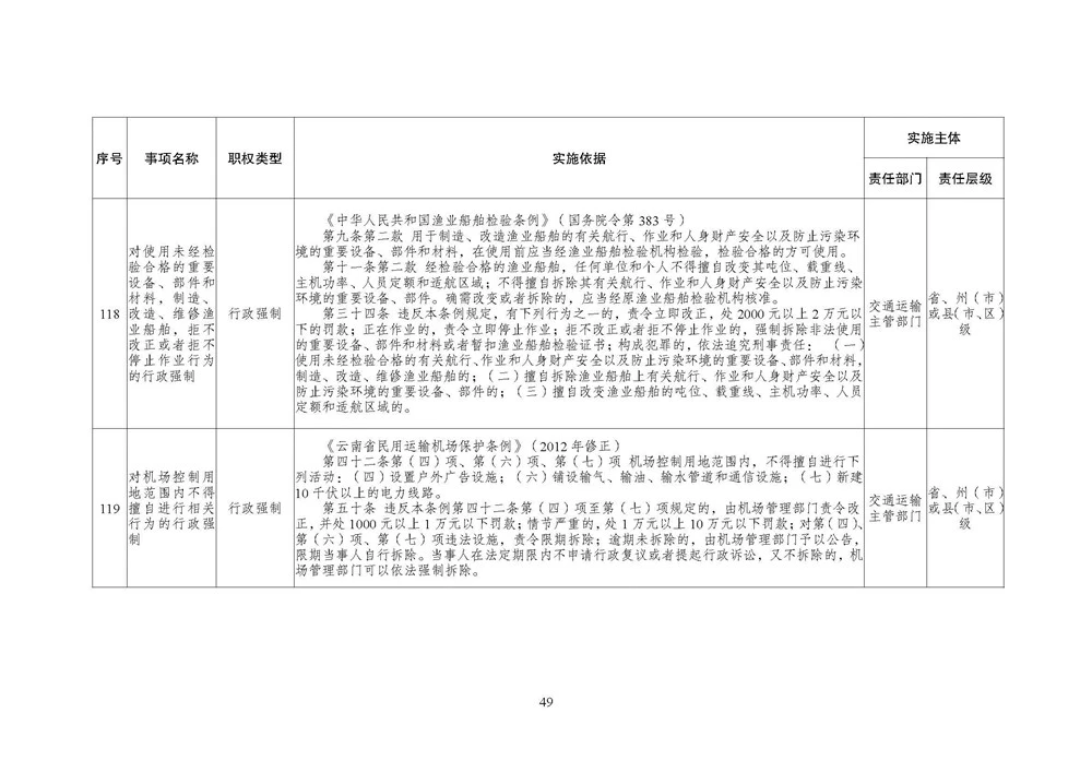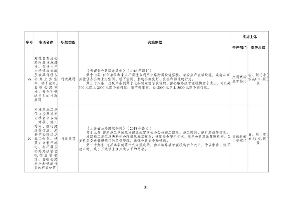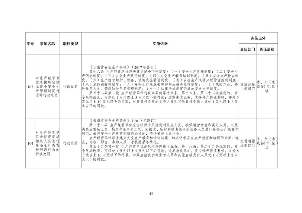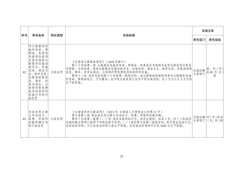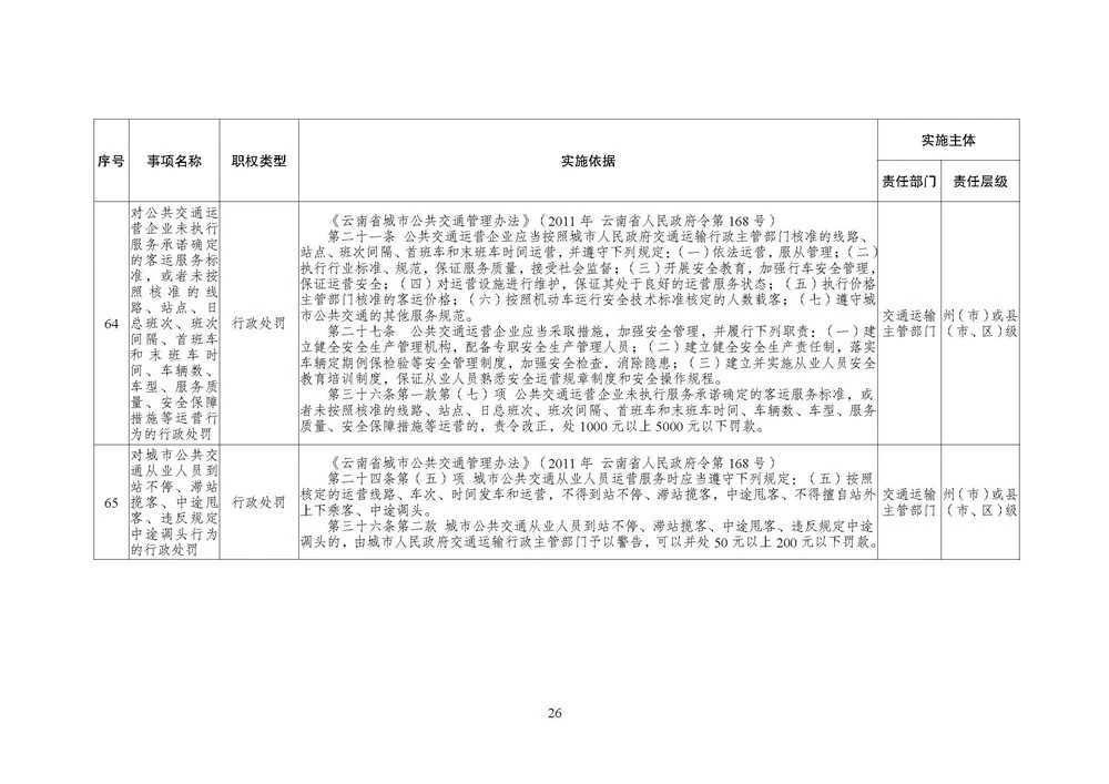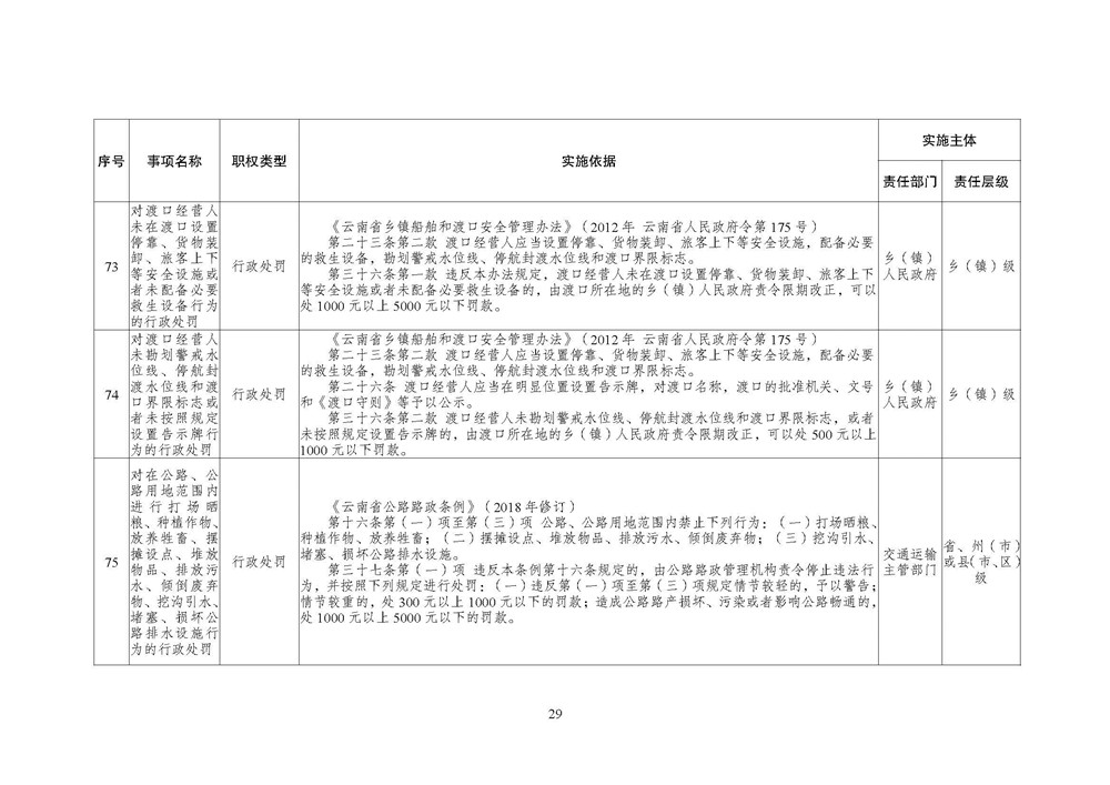 云南省交通运输综合行政执法事项指导目录(2021年版)
