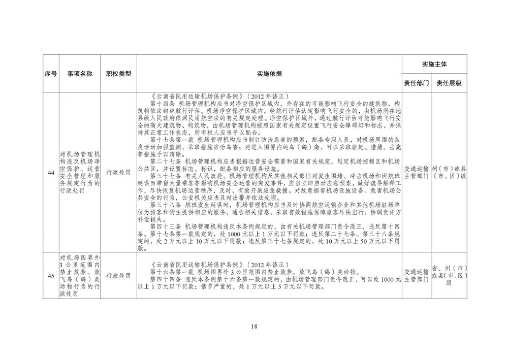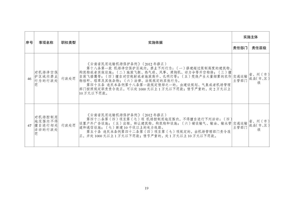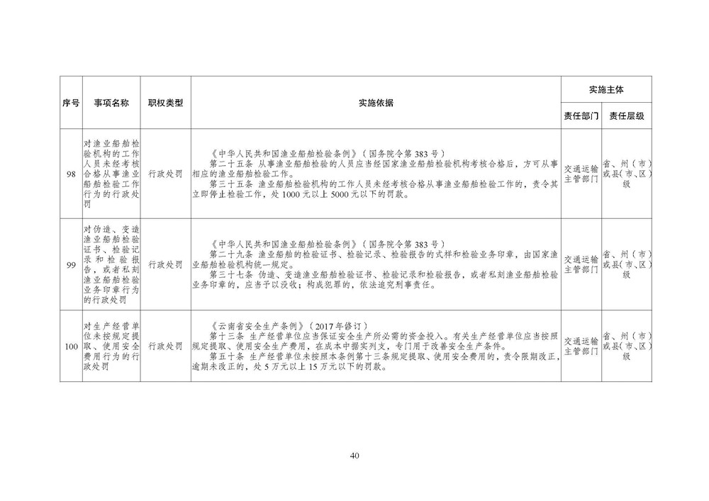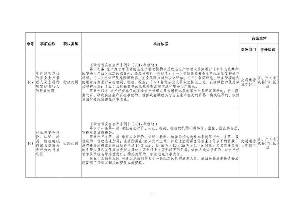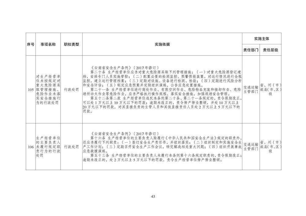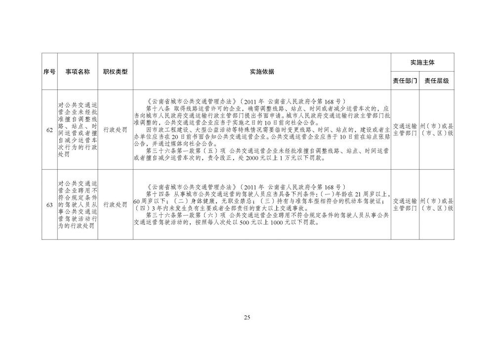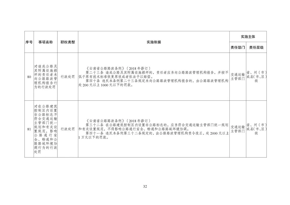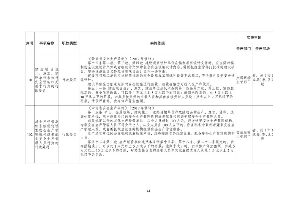 云南省交通运输综合行政执法事项指导目录(2021年版)