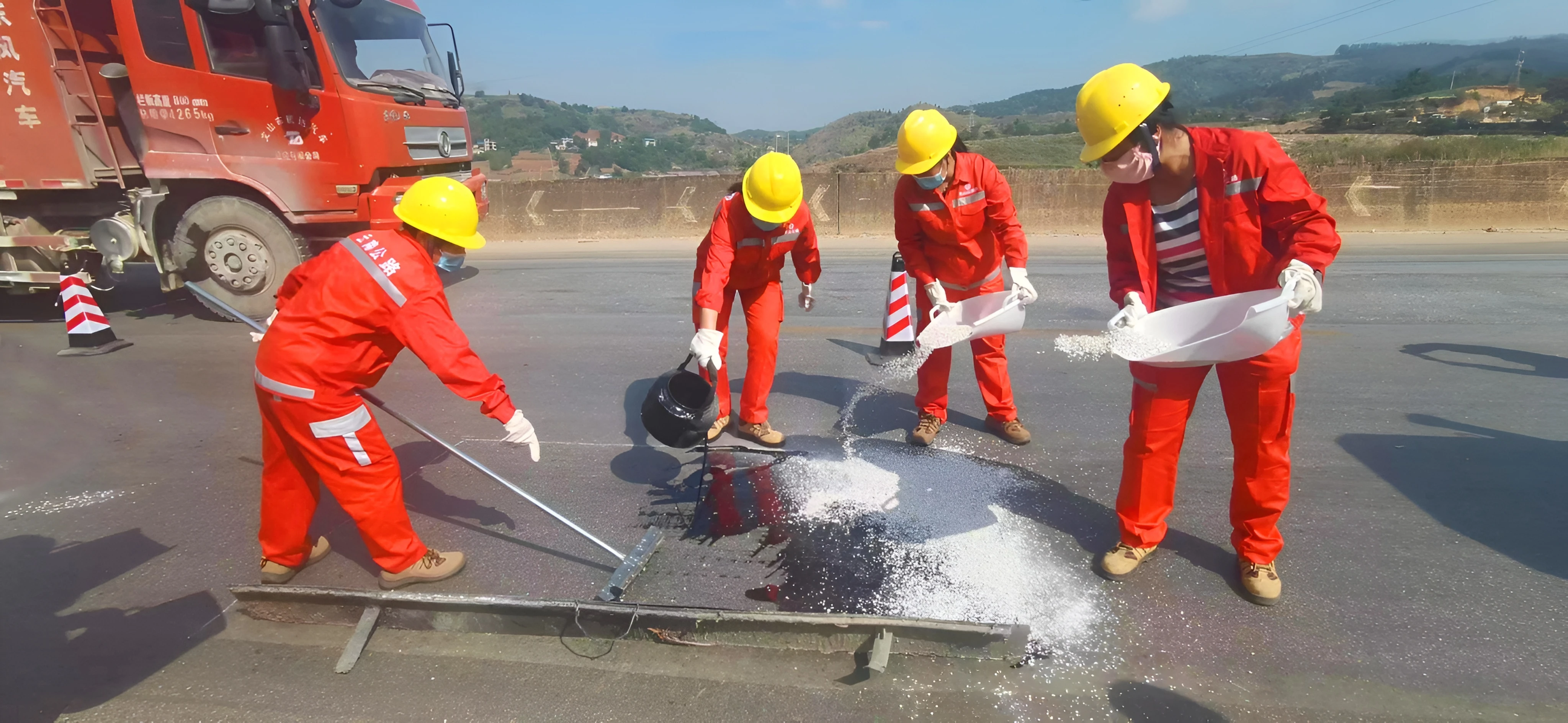 夏季,40多度的高温炙烤着大地,地里的庄稼都被晒得奄奄一息,爱美的女性几乎不敢出门,偶尔出门也要“全副武装”,只留下两只眼睛看路。而夏季正是公路养护的“黄金季节”,为确保路面病害在雨季到来之前得到及时处治,这群养护女工们早出晚归,穿着橘红色的工作服奔忙在几乎被太阳烤熟了的路面上刮油封裂、填坑洒沙,特别在铺筑路面时,面对120—160度的沥青,她们仍然撸起袖子加油干,拿起铲子熟练地收边,顾不得起泡的双手、顾不得滚烫的脚底,尽管汗水湿透衣背,沥青沾满裤腿,她们仍然干劲十足,无怨无悔,黝黑的脸上绽放着灿烂的笑容。