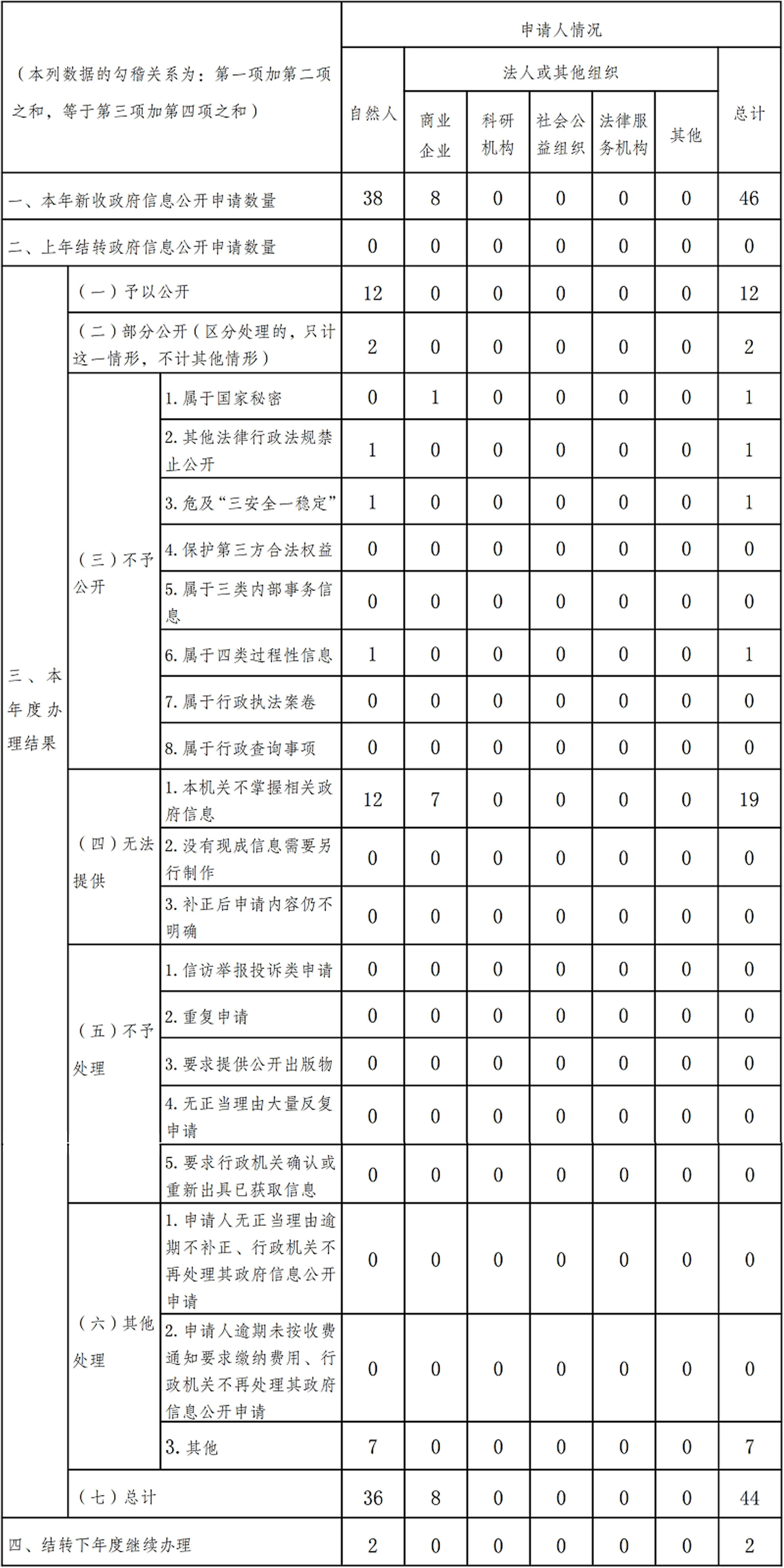 根据《中华人民共和国政府信息公开条例》(以下简称《条例》)和《国务院办公厅政府信息与政务公开办公室关于印发〈中华人民共和国政府信息公开工作年度报告格式〉的通知》要求,编制本年度报告。本报告主要包括总体情况、主动公开政府信息情况、收到和处理政府信息公开申请情况、政府信息公开行政复议和行政诉讼情况、存在的主要问题及改进情况、其他需要报告的事项6个部分,所列数据统计时限从2023年1月1日起至2023年12月31日止。