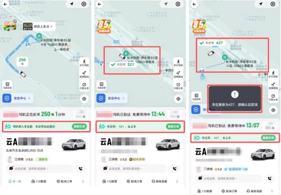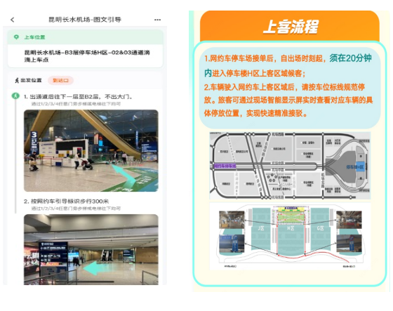 在昆明长水国际机场,场站管理方与滴滴出行合作,创新推出“网约车车位号可视化”服务。