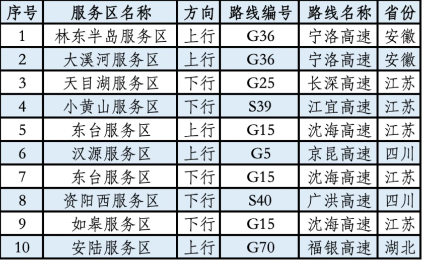 国庆中秋假期,全国范围内研判的充电特别繁忙的高速服务区,如表2所示。