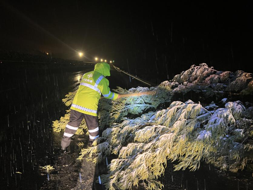发生事故时,他们手持铁锹铲除积雪,撒布融雪剂于冰凌路段,尽管双手被冻得麻木,脸上被寒风吹得生疼,但他们的眼神始终坚定而执着。同时,机械操作手驾驶装载机争分夺秒地清理路面积雪和结冰,大型机械的轰鸣声奏响了一曲激昂的抗冰保通乐章。
