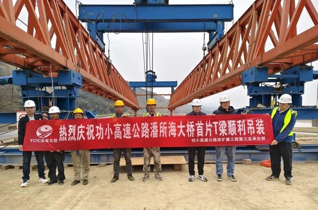 3月30日,G85银昆高速公路寻甸(功山)至嵩明(小铺)段改扩建工程潘所海大桥首片预制T梁在潘所海大桥平稳、精准落位,标志着项目桥梁施工正式进入上部结构施工阶段,为全线工程推进按下了“加速键”、拉动了“进度条”。