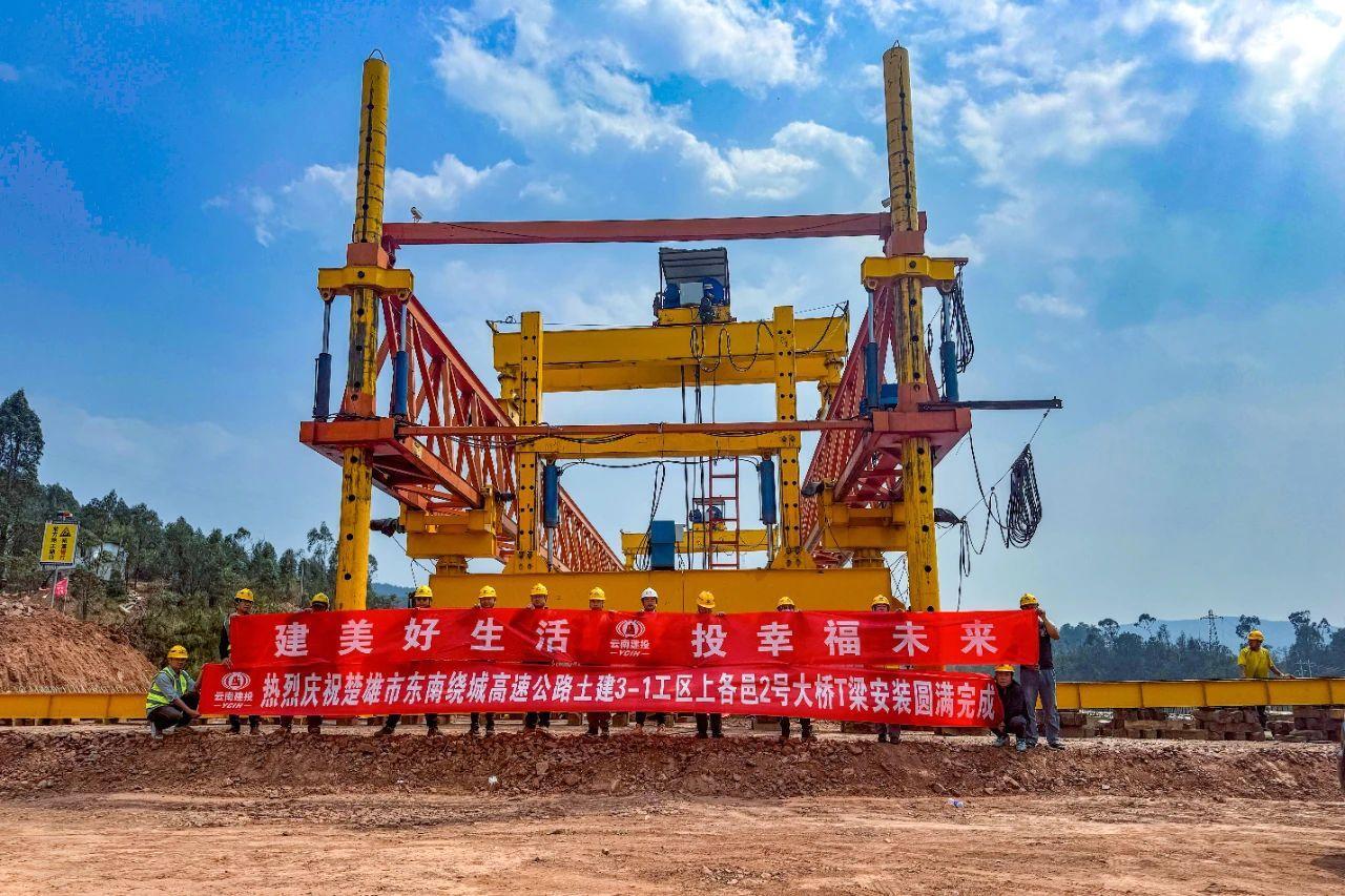 3月29日,楚雄市东南绕城高速公路项目上各邑2号大桥30米T梁安装完成。