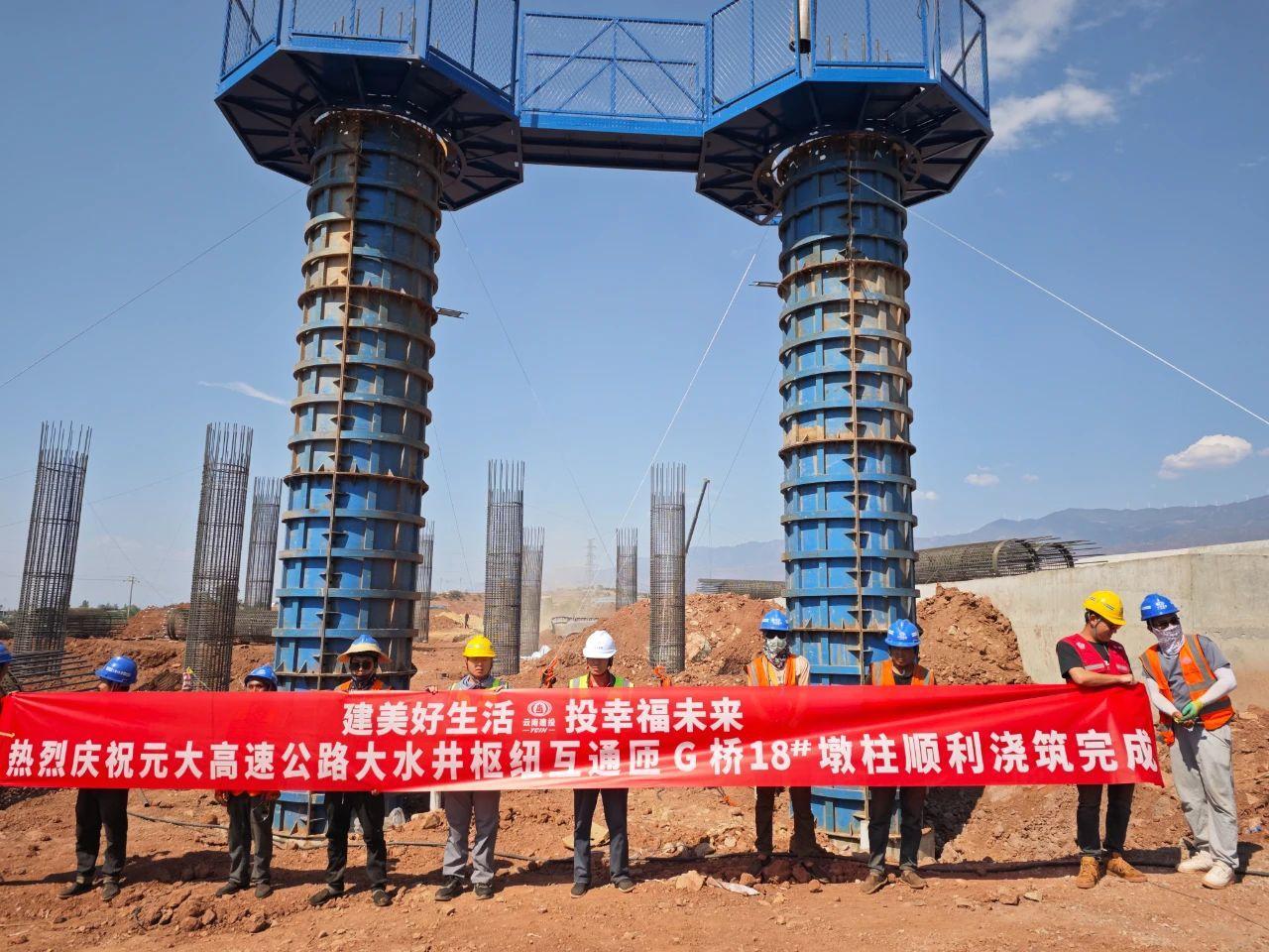 3月25日,元谋至大姚(新街)高速公路大水井枢纽互通首根墩柱顺利浇筑。