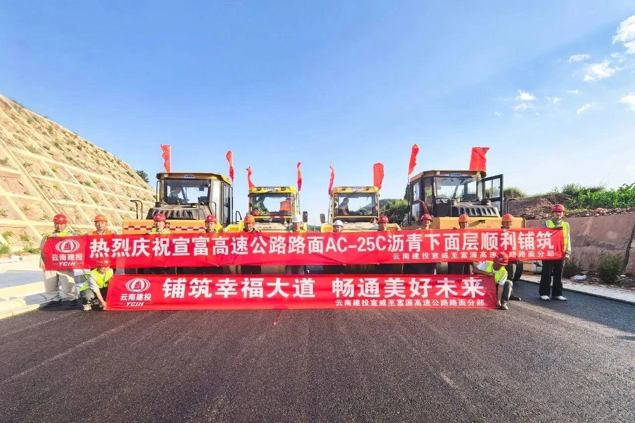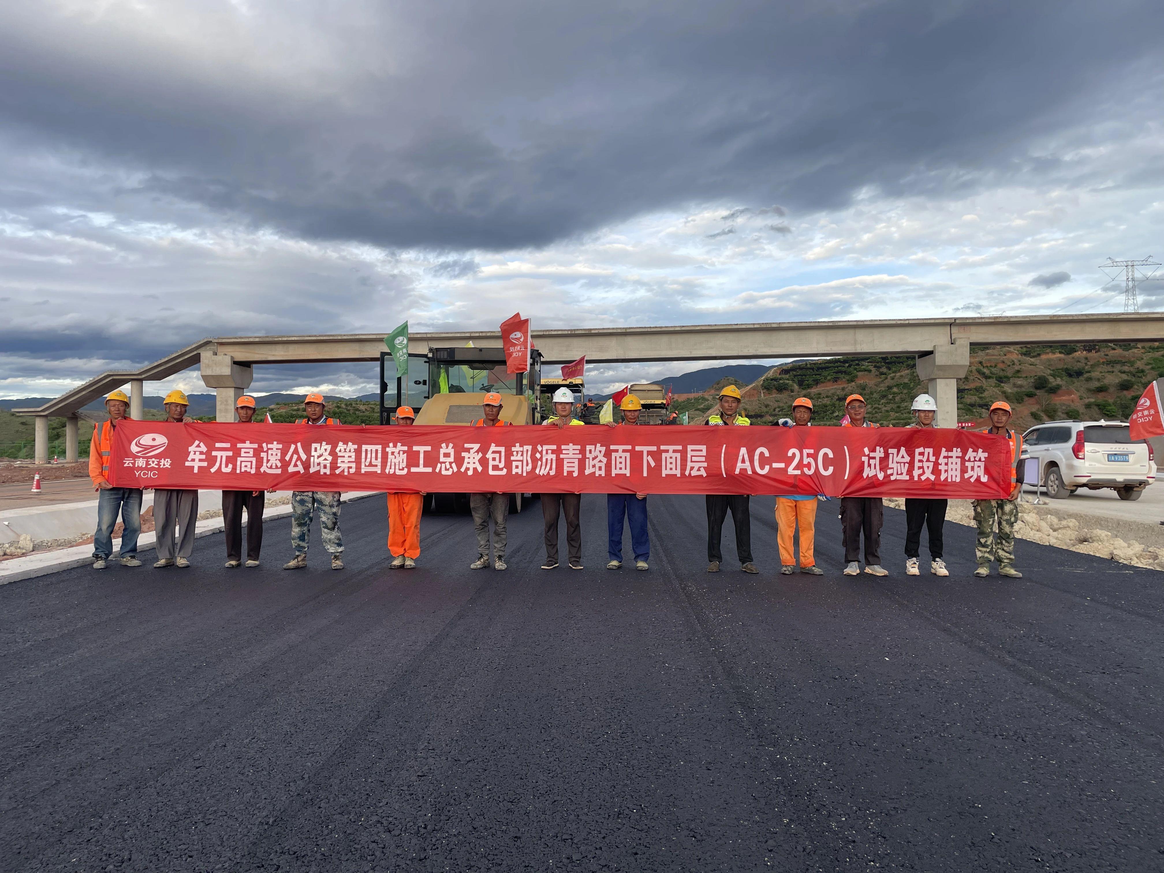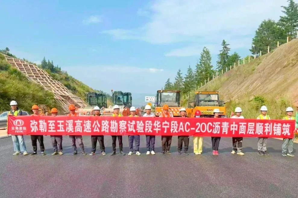 6月12日,弥玉高速公路项目(华宁试验段)沥青中面层试验段顺利铺筑完成,摊铺长度300米。