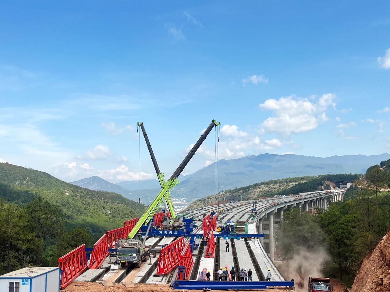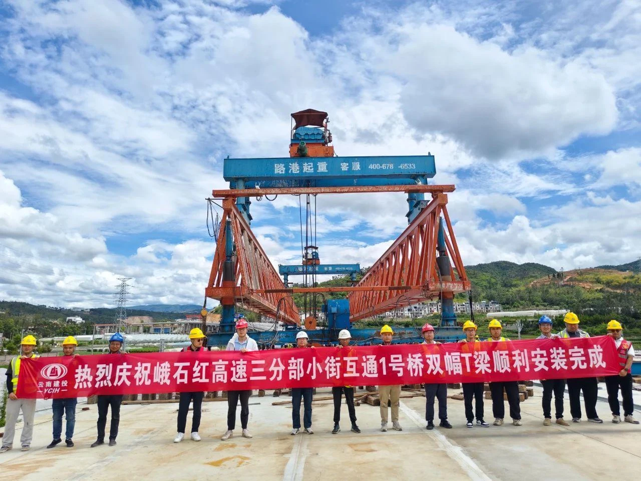 6月17日,峨石红高速(玉溪段)小街互通1号桥双幅T梁顺利架设完成。至此,土建三分部实现主线贯通,为后续桥面系施工、路面连续摊铺奠定坚实基础。
