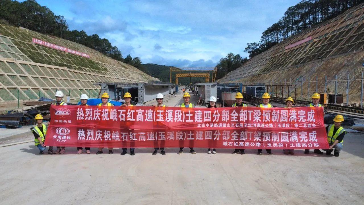 6月18日,峨石红高速(玉溪段)项目土建四分部承建的390片T梁全部预制完成,为后续梁板架设和桥面系作业按下“加速键”。