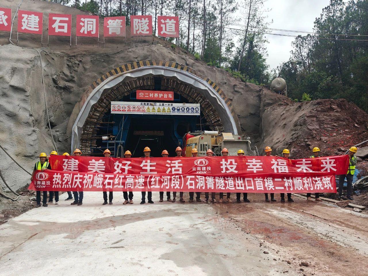 6月17日,峨石红高速(红河段)石洞箐隧道出口首模二衬圆满浇筑完成。