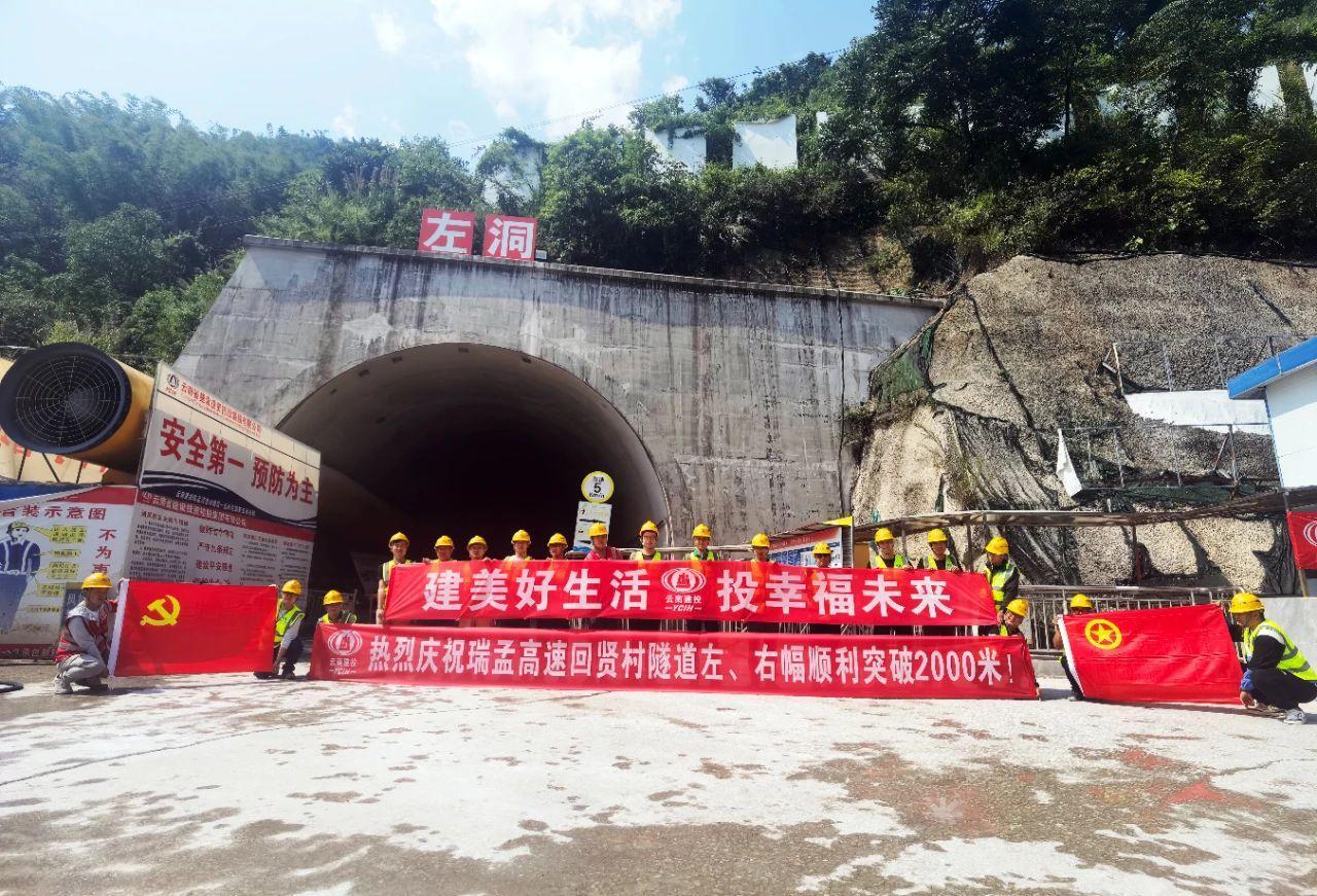 6月12日,瑞孟高速公路回贤村隧道左右洞顺利突破2000米。