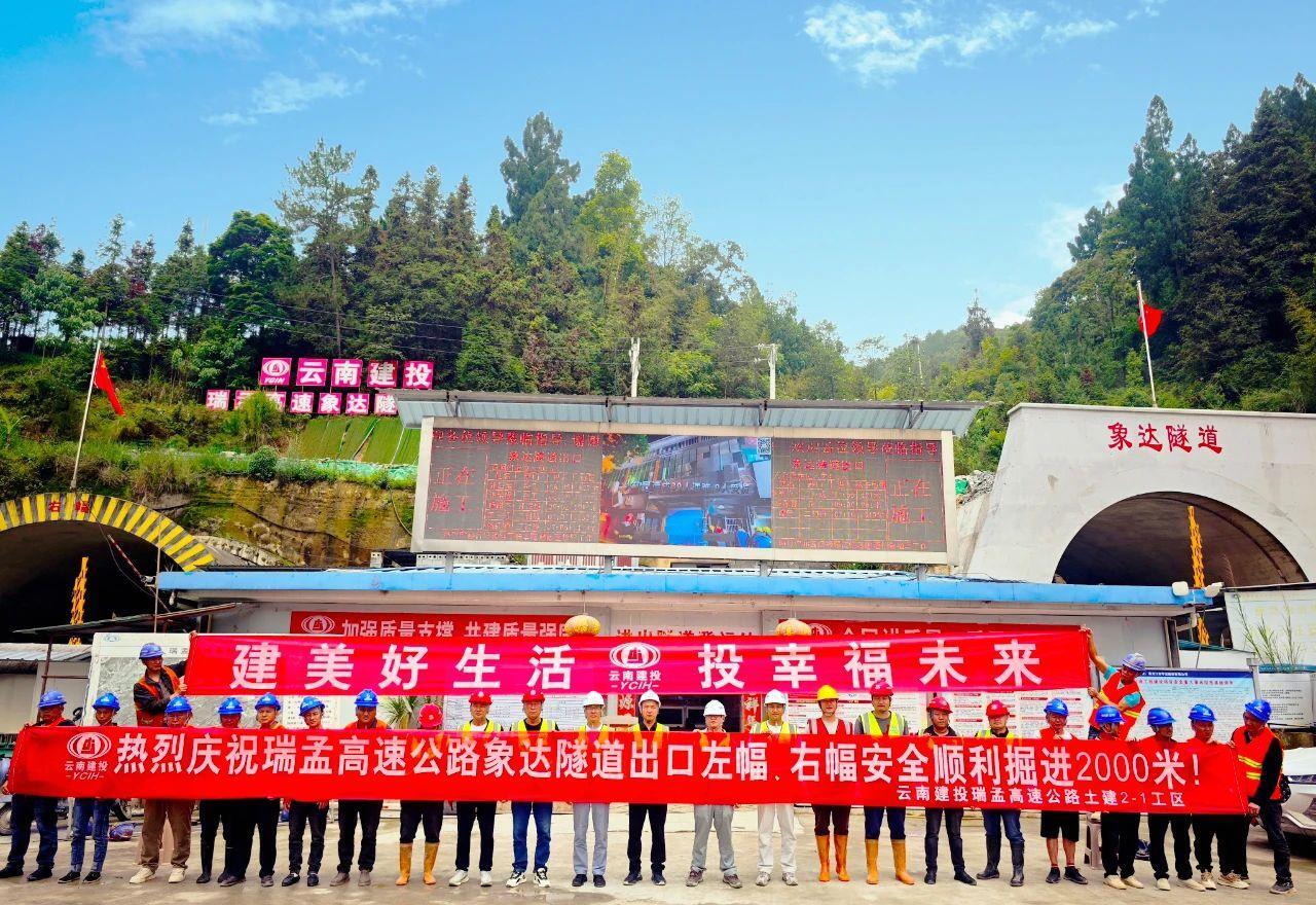 近日,瑞孟高速公路象达特长隧道出口段左右洞均顺利突破2000米。