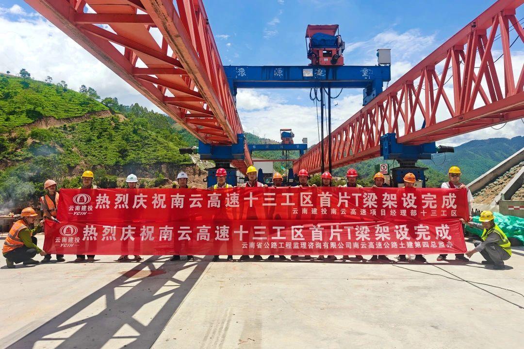 6月28日,南云高速公路项目土建十三工区首片预制T梁在温皮3#大桥架设完成,为后续桥面系施工及纵向通道形成奠定了良好基础。