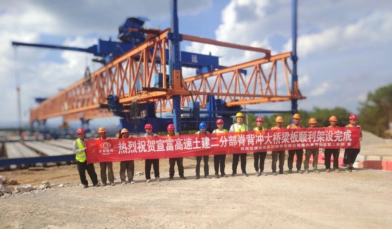 7月7日,宣富高速公路项目脊背冲大桥T梁顺利架设完成。