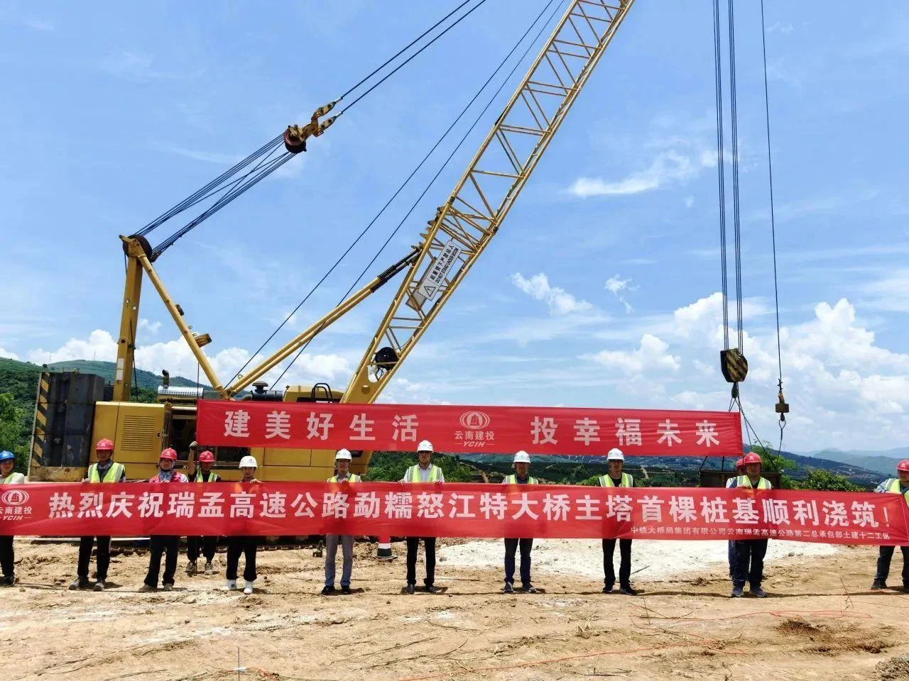 7月12日,瑞孟高速项目勐糯怒江特大桥孟连岸主塔首棵桩基顺利浇筑完成。