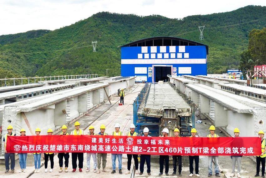 7月7日,楚雄市东南绕城高速公路项目土建2-2工区全部T梁预制任务圆满完成。