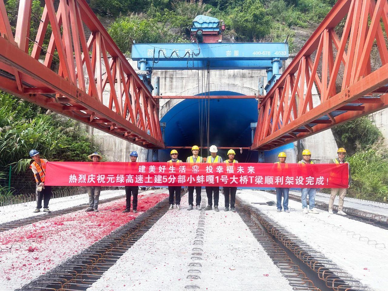 8月11日,元绿高速公路小蚌嘎1号大桥顺利完成T梁架设,至此元绿土建五分部T梁全部架设完成。