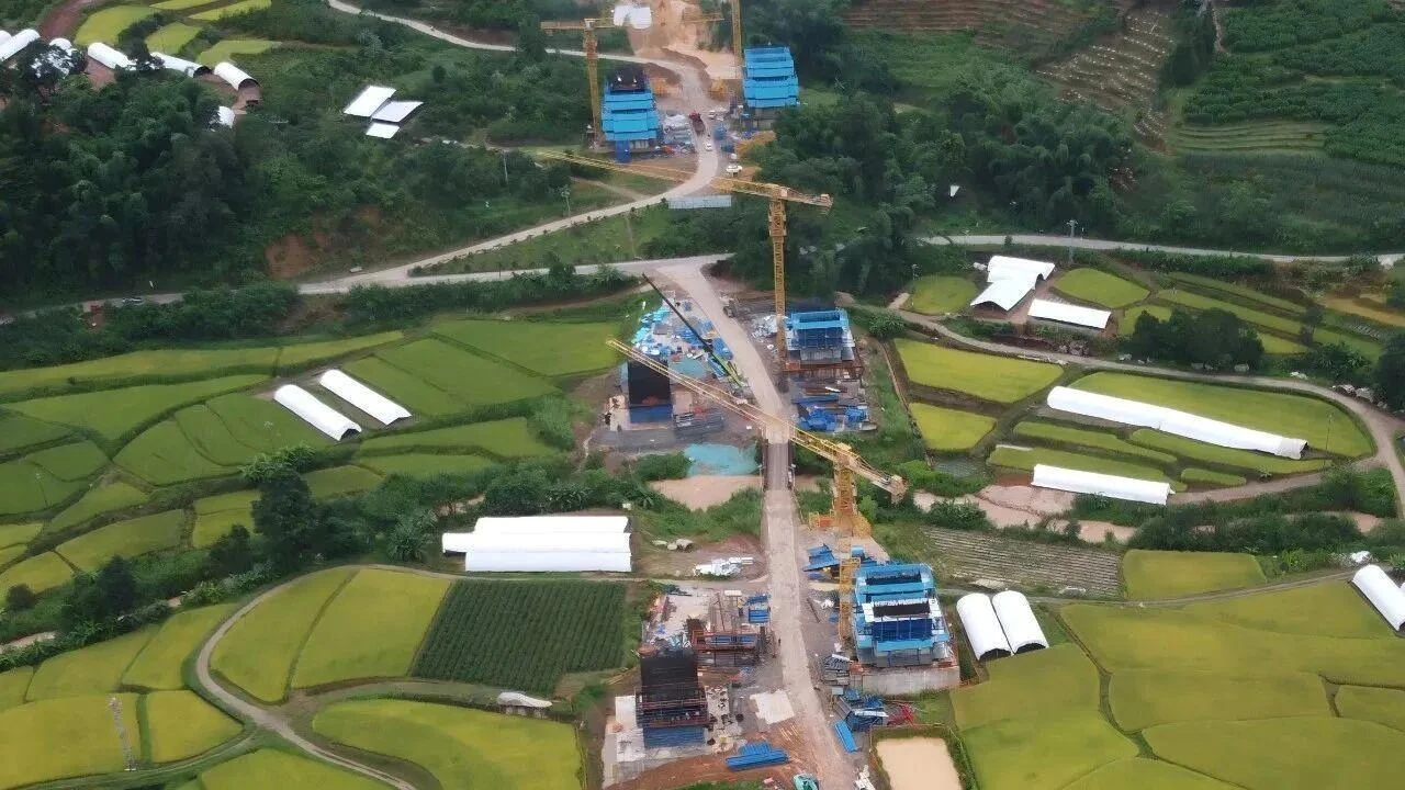 永宁二号大桥位于泸西县永宁乡城子新村东侧约2.5公里处,是项目控制性工程之一。该桥全长156.08米,共架设预制T梁60片,主要承担着跨越南北向深切沟谷及衔接B匝道枢纽的关键功能。
