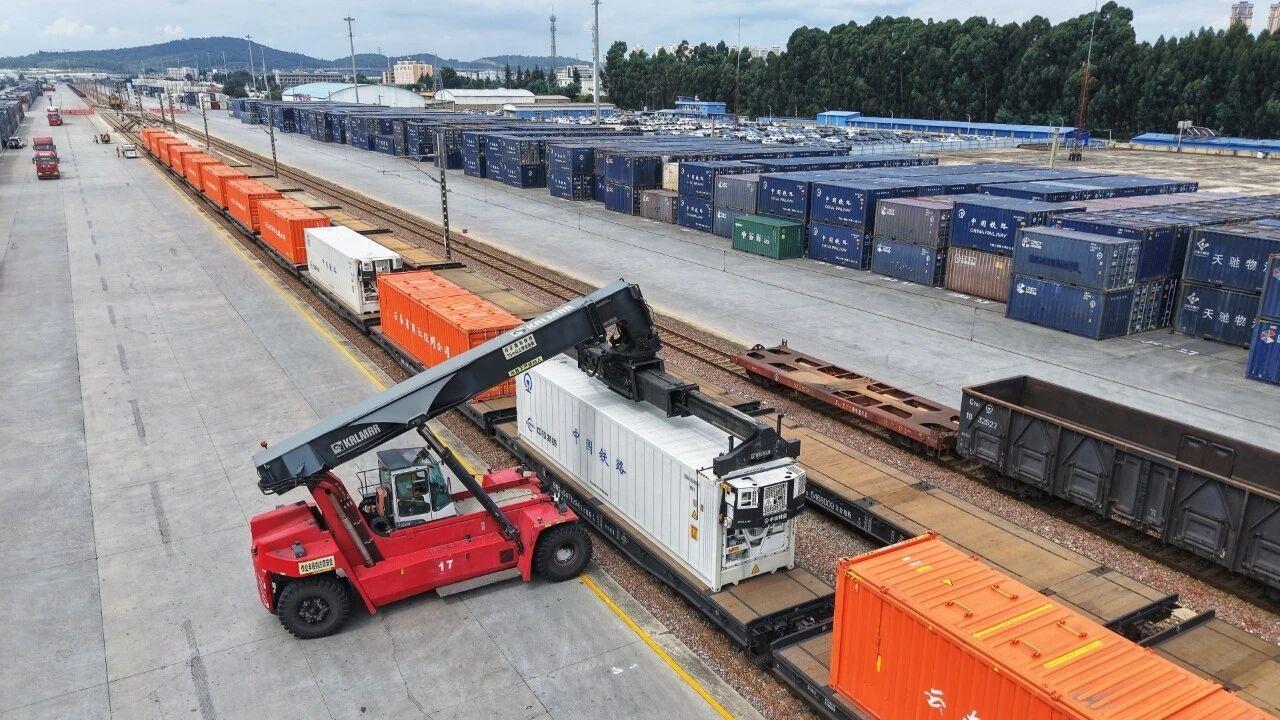 近年来,国铁昆明局持续构建完善“通道+枢纽+网络”的物流基础设施体系,推行“铁路快通”模式,加强货物运输组织,运输能力和效率进一步提升,跨境货物列车每日开行数量由开通初期的2列增加到目前常态18列,列车牵引吨数由2000吨增至2800吨。
