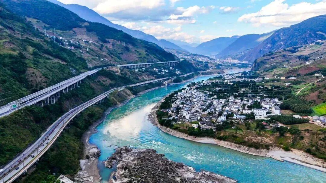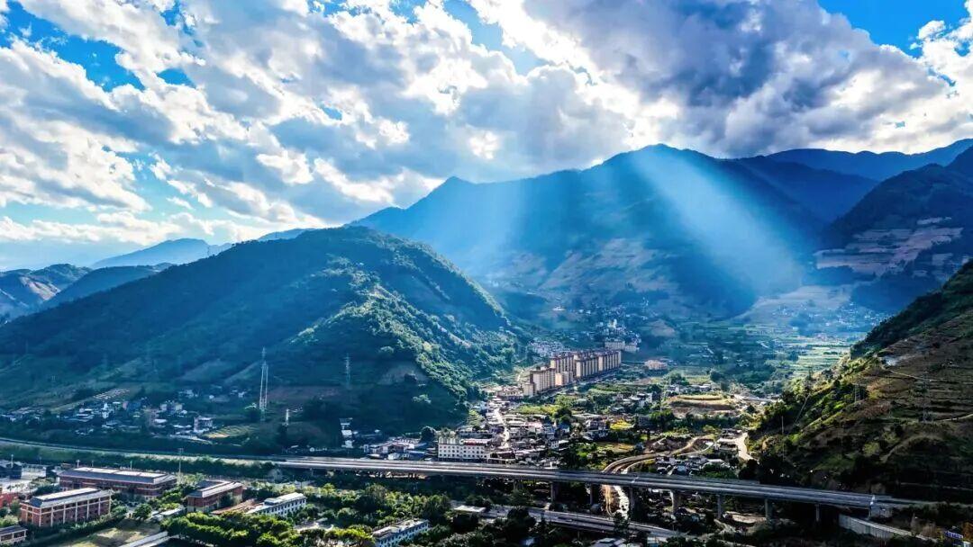 从空中俯瞰,在阳光照耀下,条条公路如同大地的血脉,为峡谷大地注入新的生机与活力,铺就了一条通往全面小康的康庄大道。