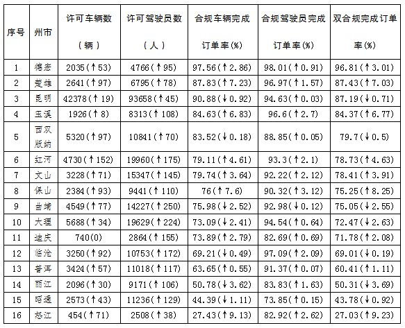 为督促网约车平台公司依法依规开展经营,加快网约车合规化进程,进一步规范我省网约车行业健康可持续发展,亚洲博彩公司排名 定期向社会公开发布《云南省网约车合规化情况月报》,欢迎广大市民参与监督,积极向地方交通运输主管部门或12328监督热线举报不合规平台、驾驶员和车辆线索。