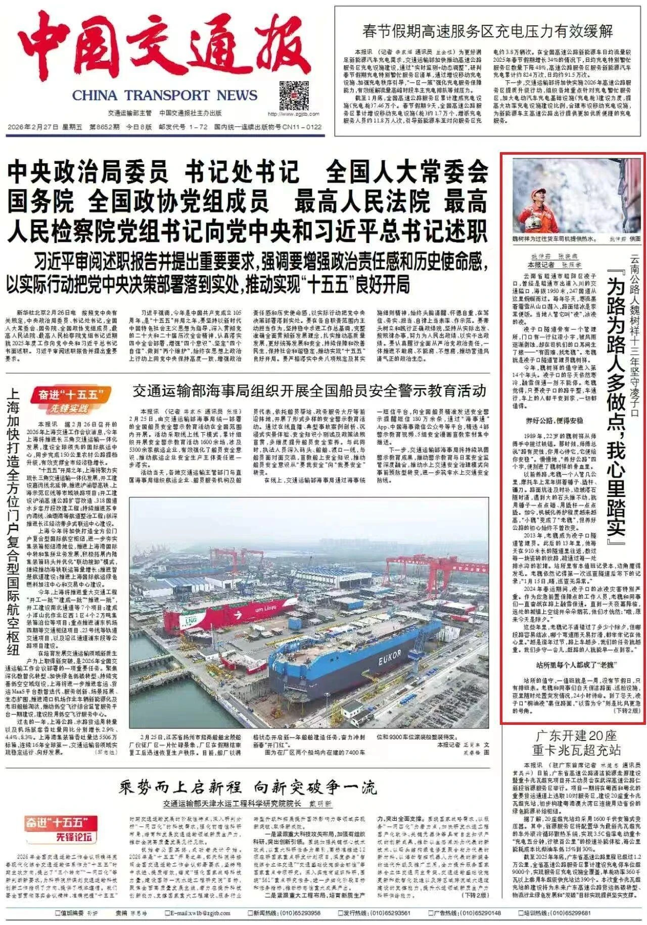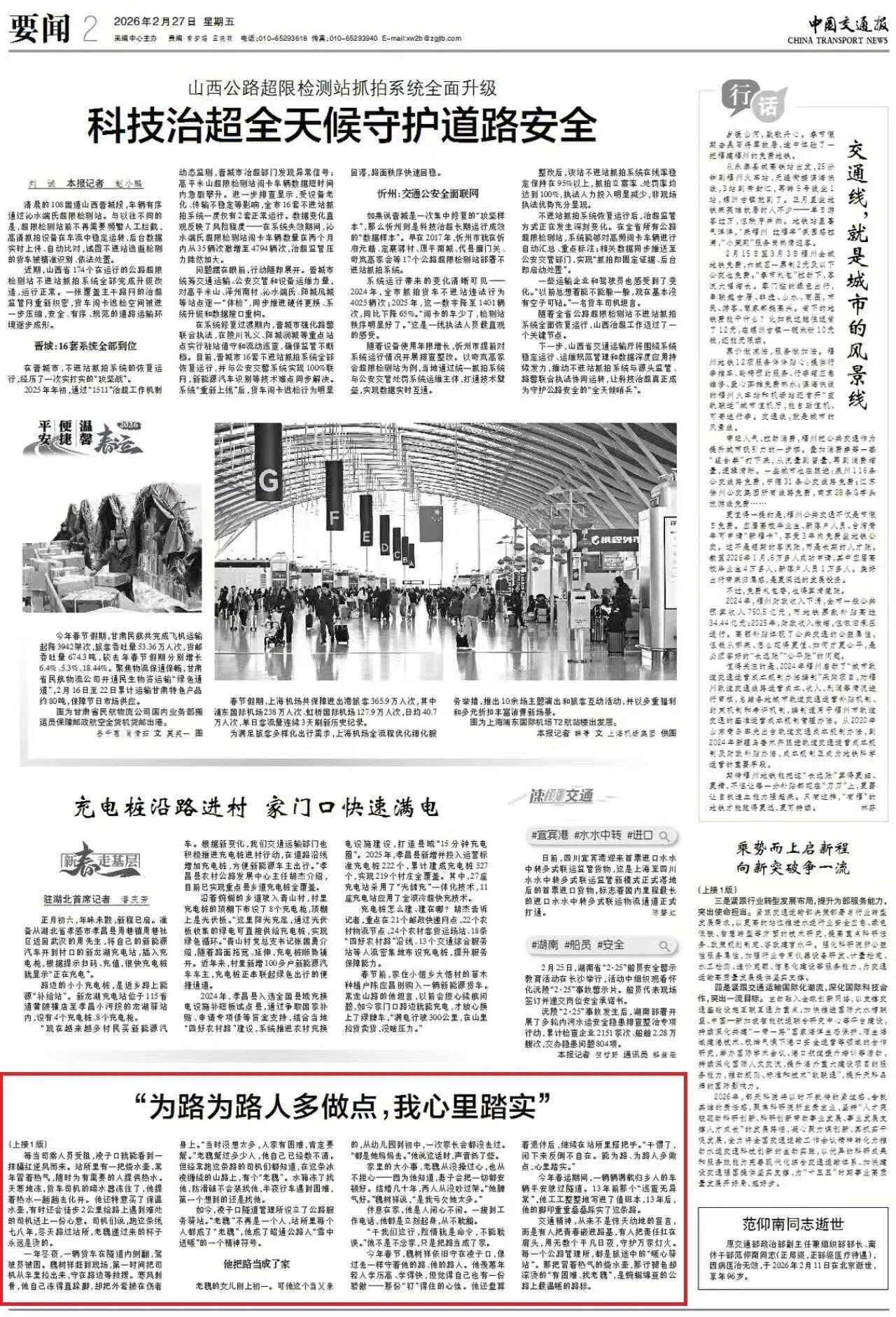 【中国交通报】头版 为路为路人多做点,我心里踏实