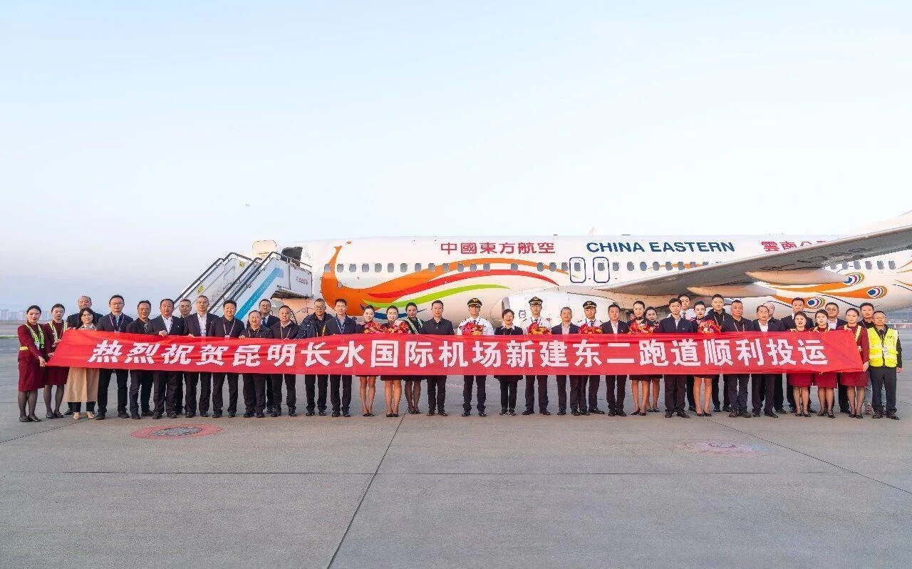 4月16日06时40分,随着东方航空MU9648(新加坡—昆明)航班平稳降落在东二跑道,云南航空产业投资集团有限责任公司(以下简称“航产投集团”)所属昆明长水国际机场(以下简称“昆明机场”)东二跑道及附属滑行道、东货运机坪正式投入运行,标志着昆明机场飞行区运行体系完成全面升级,枢纽保障能力和运行效率迈上新台阶。